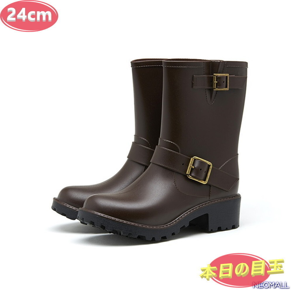 1スタ☆ レディース お洒落な レインブーツ【495】 24.0cm ブラウン レインシューズ 雨靴 梅雨対策 防滑 防水 雨 雪 晴れ兼用
