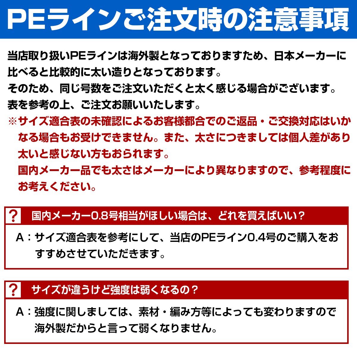 ※当店取り扱いPEラインは海外製のため、日本メーカーに比べると比較的太い造りとなっております。
