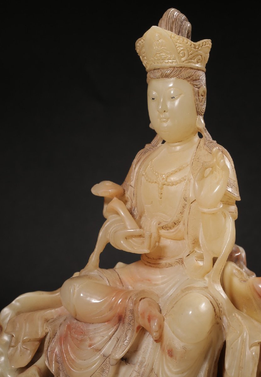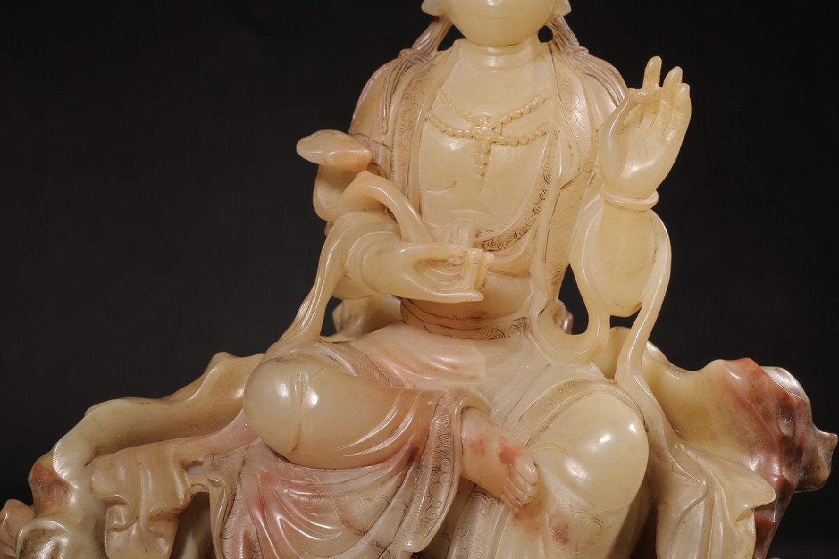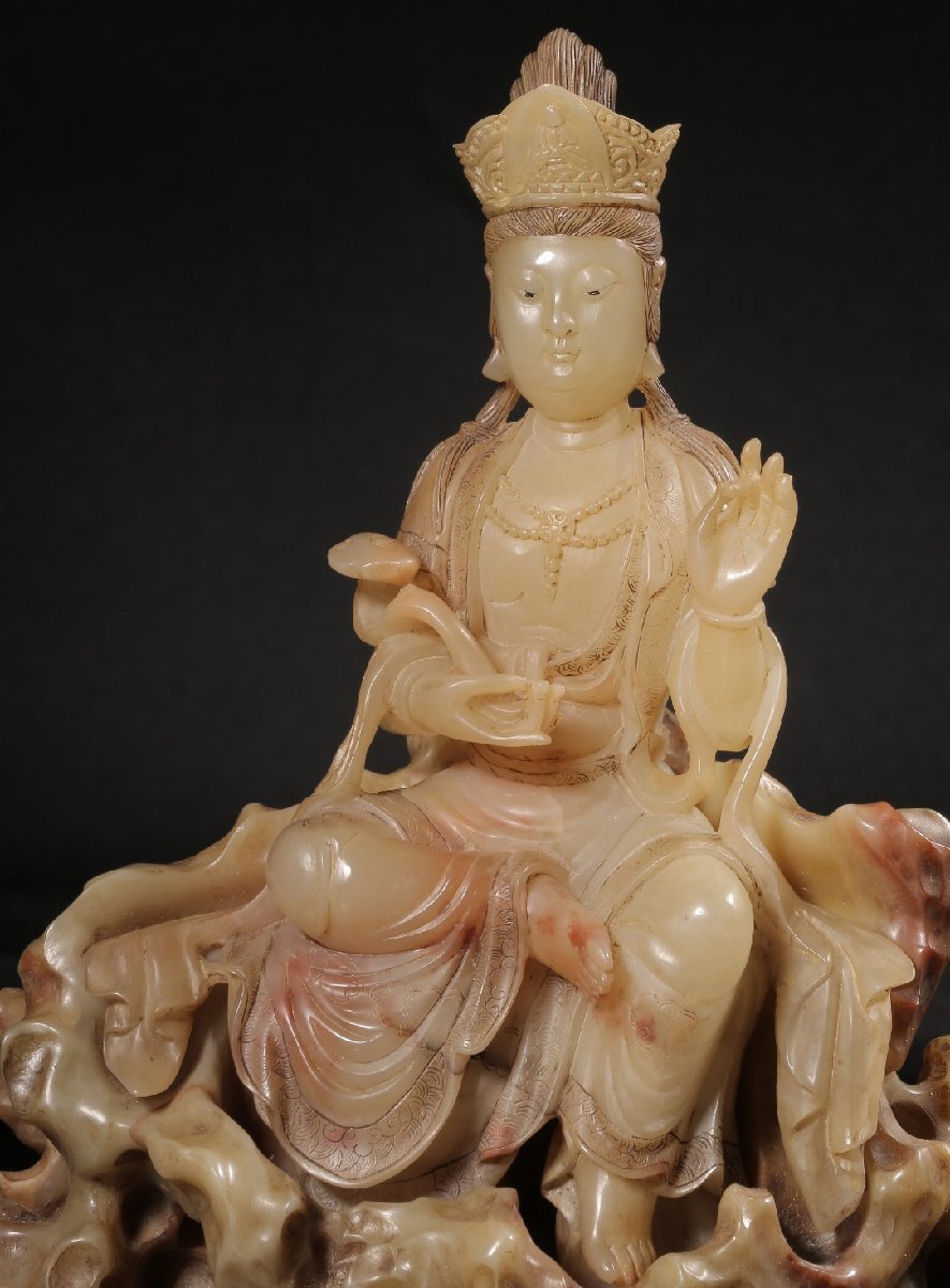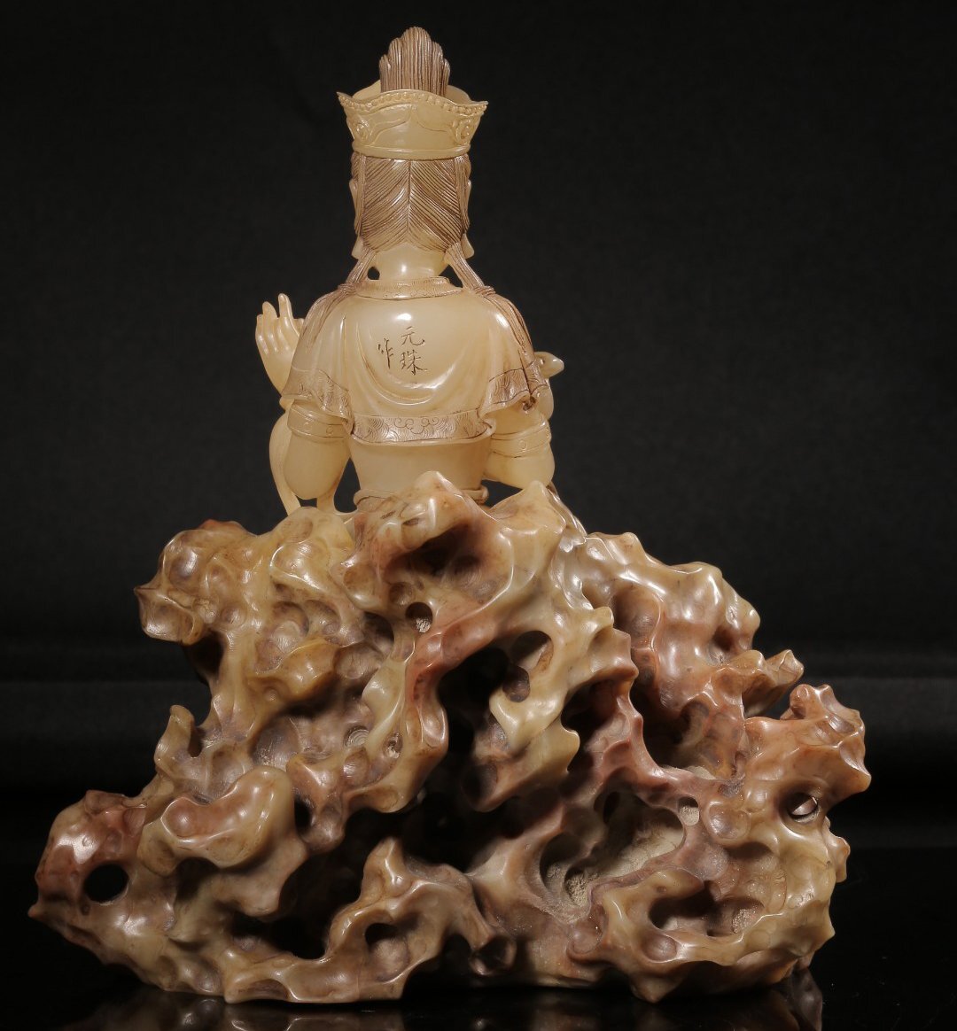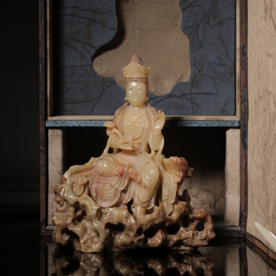【安】清時代 元珠銘 寿山石彫 如意観音仏像 共箱 極細工 古置物 古擺件 中国古美術 時代物 272 サイズ(約寸) |