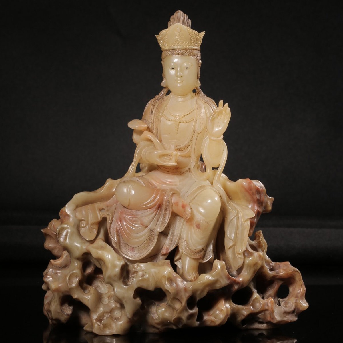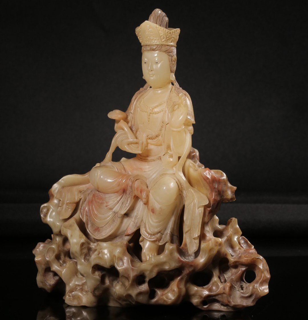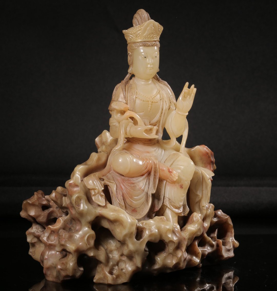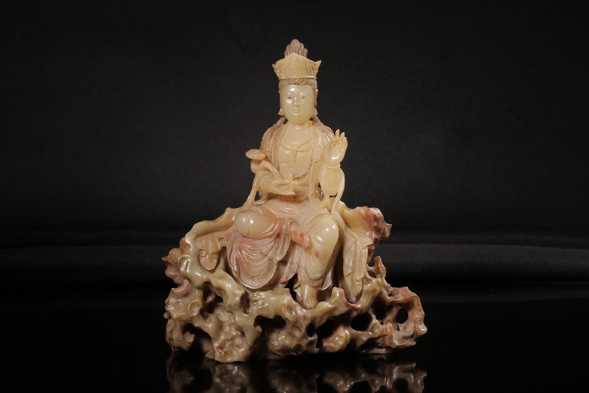 【安】清時代 元珠銘 寿山石彫 如意観音仏像 共箱 極細工 古置物 古擺件 中国古美術 時代物 272 サイズ(約寸) |