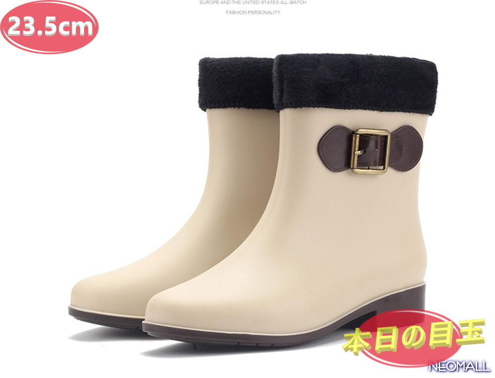 1スタ☆ レインブーツ【499】 23.5cm ベージュ ジョッキーブーツ防水 レインシューズ レディース 長靴 レインブーツ