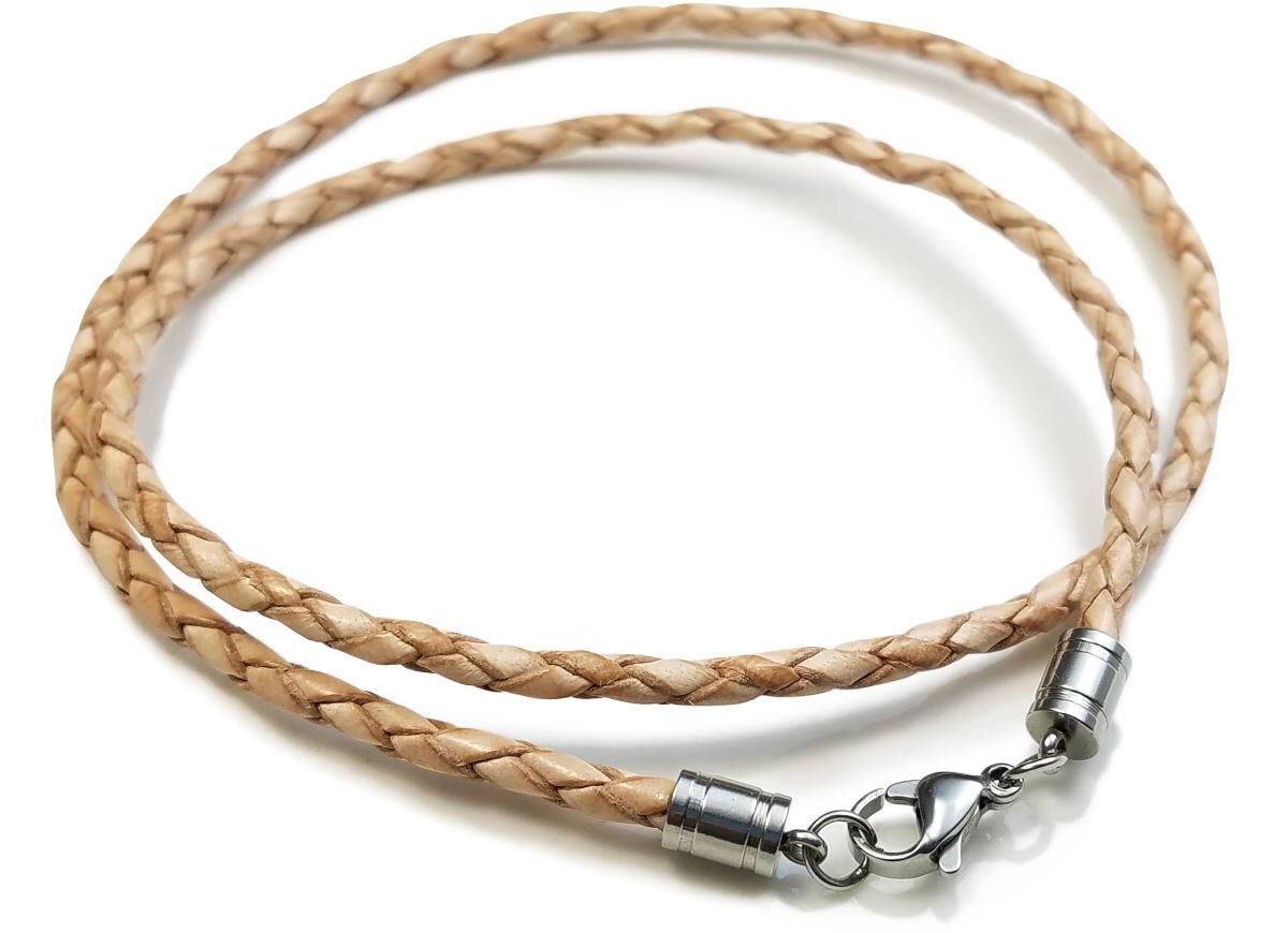 レザーチョーカー牛革4つ編み紐◆3mm/45cmライトブラウン新品国産本革サーファースケーターバイカープレゼントギフト贈り物誕生日記念日