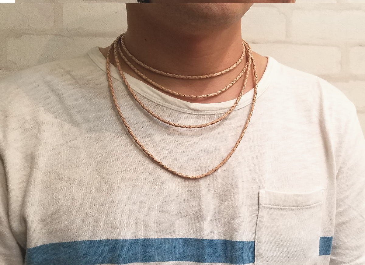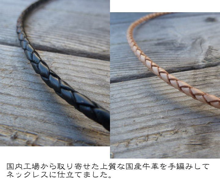 国内工場から取り寄せた上質な国産牛革を手編みしてネックレスに仕立てました。
