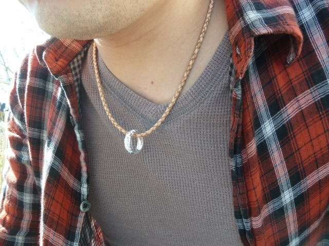 普段指にはめるリングが仕事中はつかえない、サイズがあわなくて使えないなど。そういった場合にこの革紐に通してネックレスにすることで毎日リングを身に着けていることができるのです。