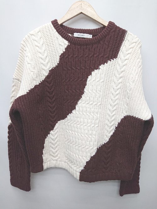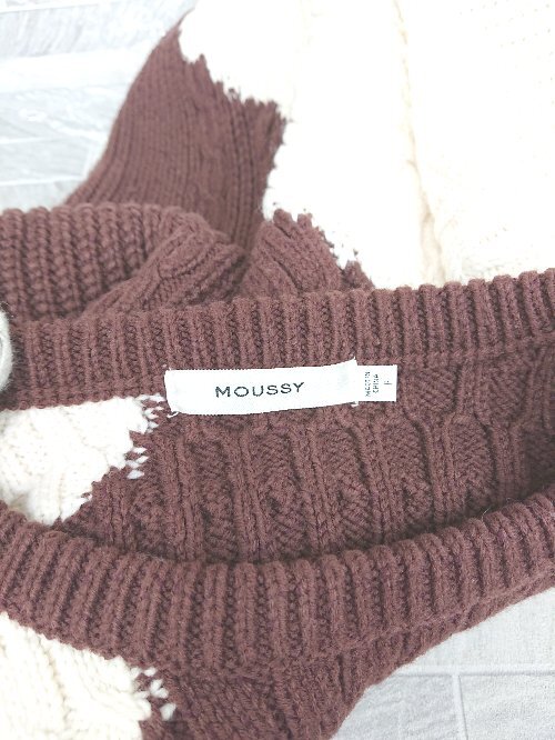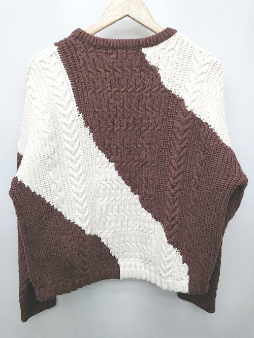 ◇ MOUSSY マウジー バイカラー 長袖 ケーブルニット セーター サイズF ブラウン アイボリー系 レディース P