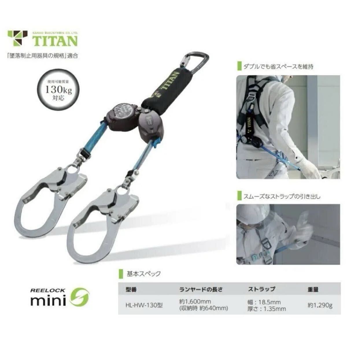 新規格 タイタン リーロックミニ ダブルランヤード HL-HW-130型 0.24秒の高速ロック REELOCK mini サンコー TITAN 850566 。