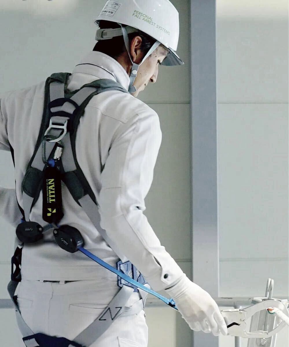 ●フルハーネス型 / 胴ベルト型兼用ロック機構付き巻き取りダブルランヤード