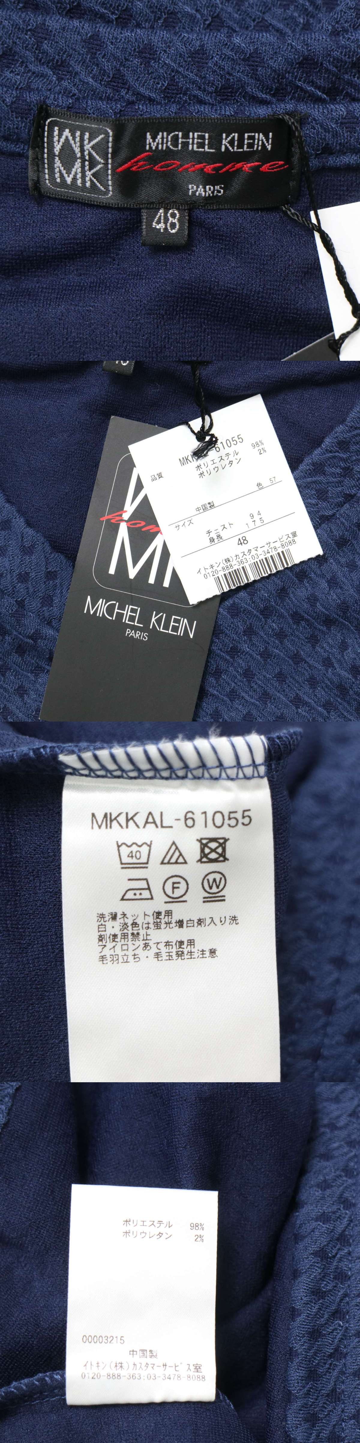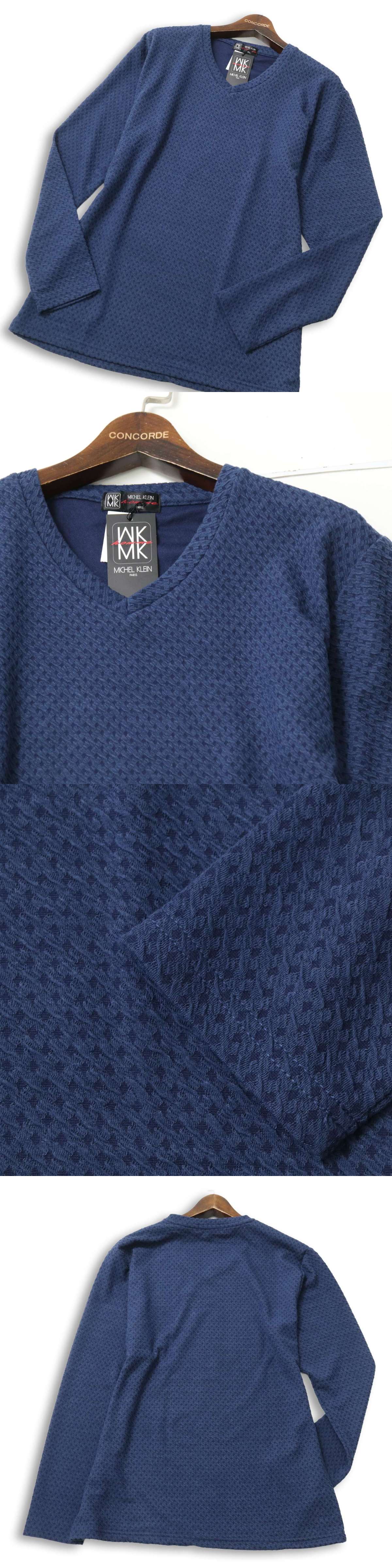 【新品 未使用】 MK HOMME ミッシェルクラン オム 通年★ 総柄 長袖 Vネック カットソー ロンTシャツ Sz.48 メンズ 紺