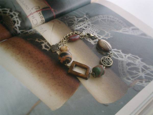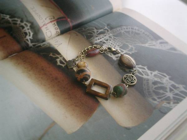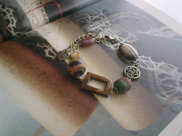 女の子チック・・シリーズです♪シックなブラウンシェルと個性的な柄を合わせてキュートモダンなブレスレットです♪10ミリ、13ミリのブラウンシェルには10ミリから13ミリ位の大きさ違い、柄違いのとんぼ玉やインドビーズやデザインチャームを合わせてアンティークモダンな表情です♪長さは全長23センチ位で調節自由です♪♪お揃いのブレスレットやネックレスも出品しています♪シンプルで飽きのこないいつまでも着けられるデザインを考えて作りました!ハンドメイドをご理解頂いてノークレーム、ノーリターンでお願いします