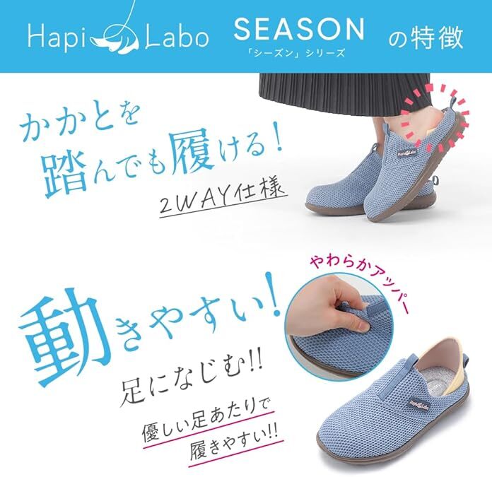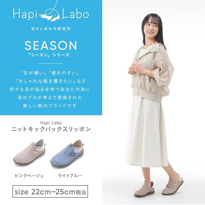 [ベイシア] ニットキックバックスリッポン レディース スリッポン HapiLabo シューズ 靴 大人 歩きやすい 軽量 痛くない 疲れにくい 優しい設計 足のしあわせ研究所 靴紐 ゴルフ カジュアル 日常 オシャレ かわいい 美脚 0511
