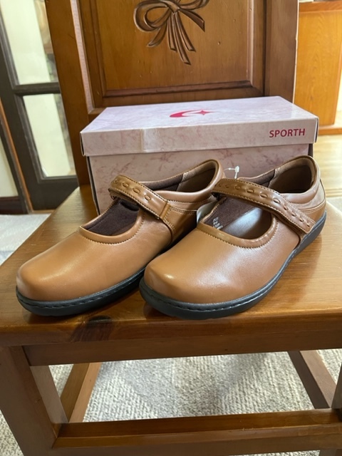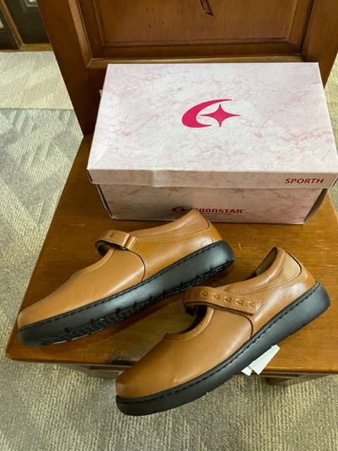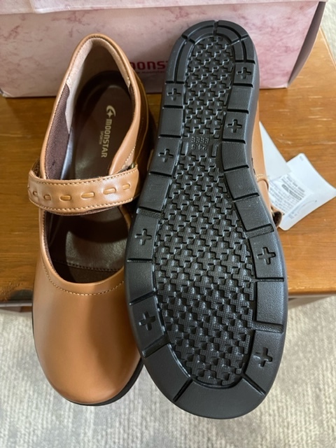 SP1531 24.5 4E ムーンスター 送料無料 新品未使用品 茶 外反母趾 天然皮革 ウオーキングシューズ レディースシューズ 幅広 散歩 MoonStar
