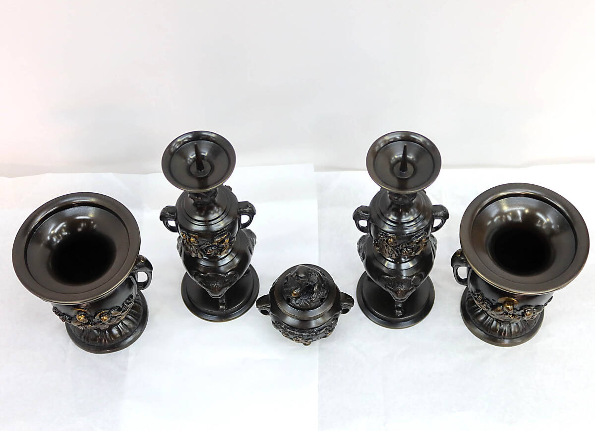 【仏壇仏具】浄土真宗本願寺派(西本願寺)用仏具 五具足 花立 香炉 ろうそく立て 線香立て 花瓶 法事法要四十九日のお参りなどに