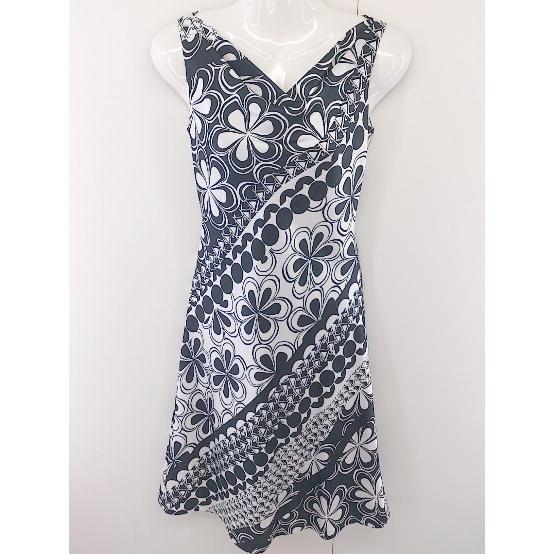 ◇ ANAYI アナイ 花柄 ノースリーブ 膝下丈 ワンピース サイズ36 ダークネイビー ホワイト系 レディース