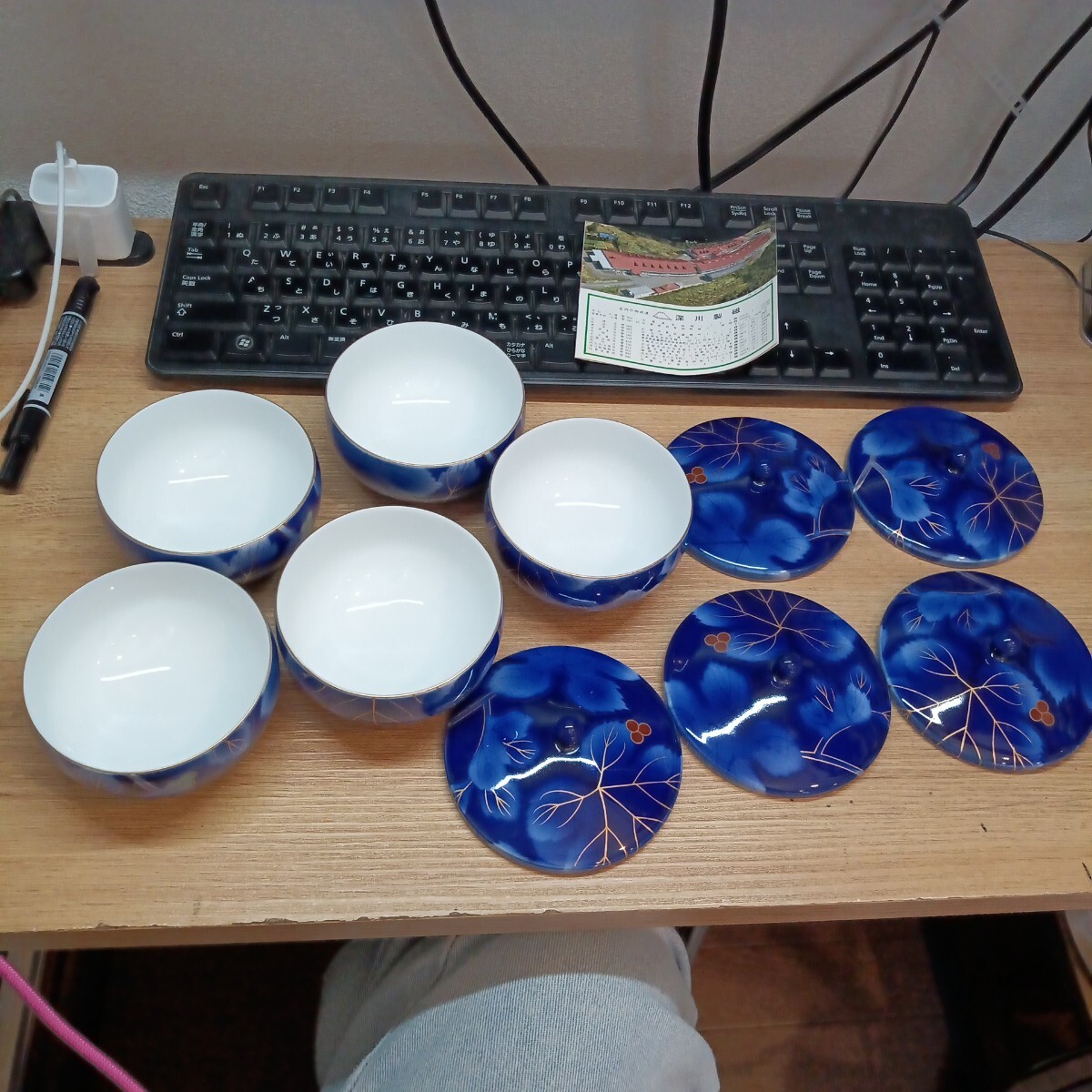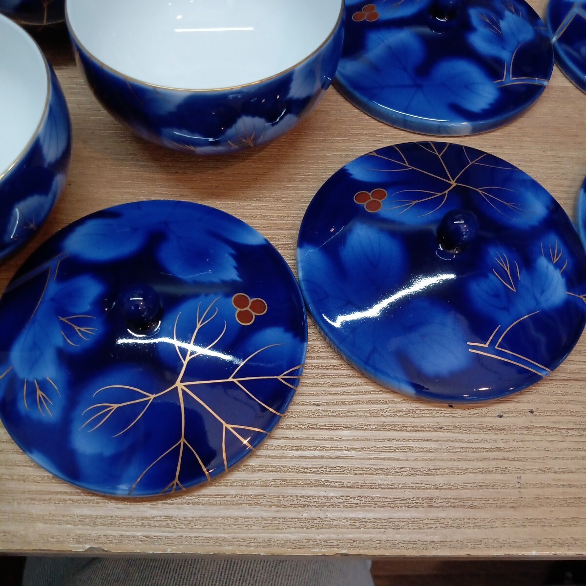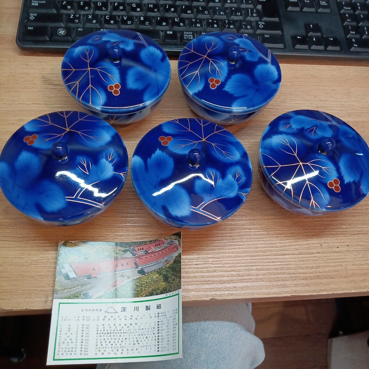 ★新品未使用★宮内庁御用達 深川製磁 美術有田焼 汲出揃 蓋付 湯み 5客 共箱入 深川製 茶器 湯飲み 湯呑 陶器 和食器 0513-B5Y-EI1