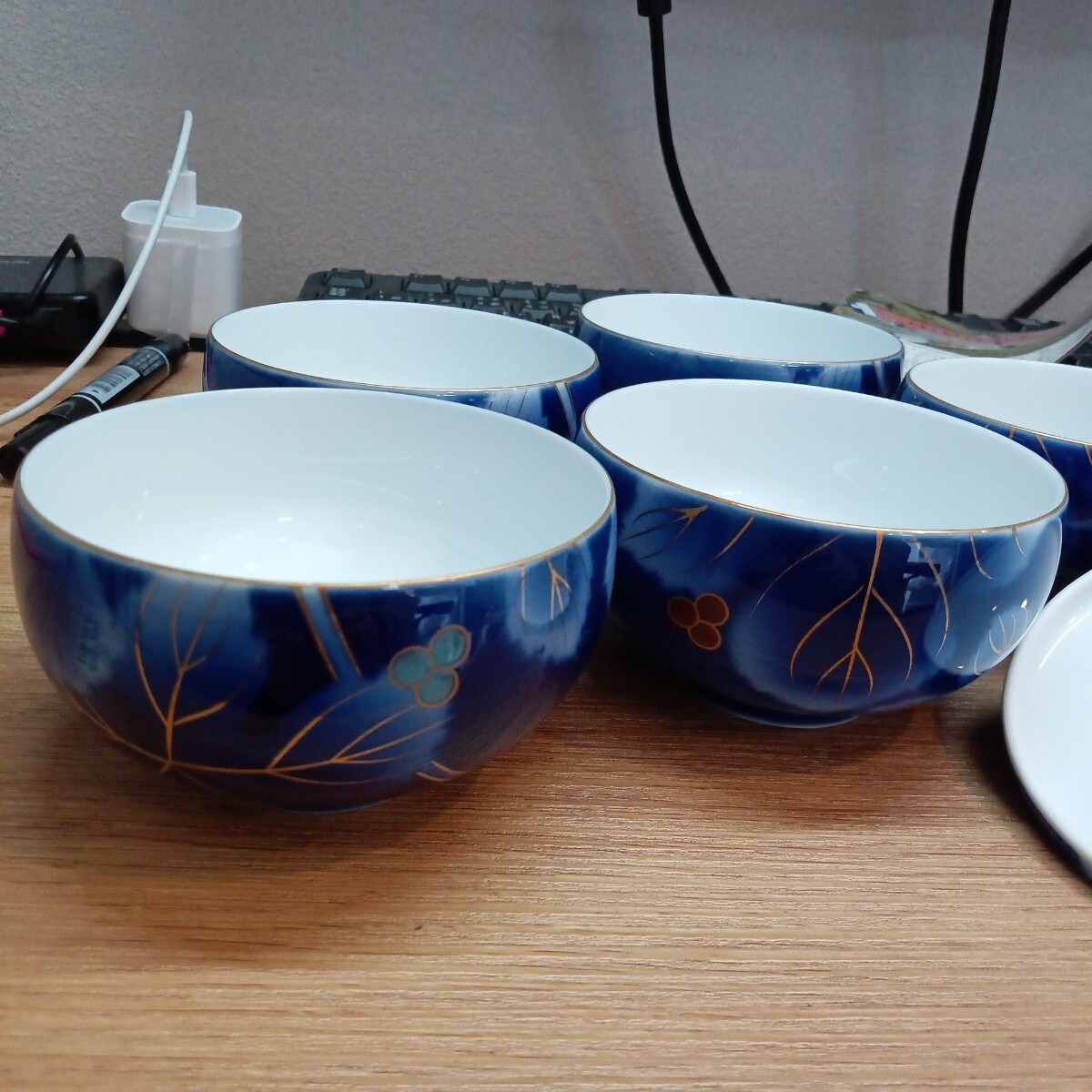 ★新品未使用★宮内庁御用達 深川製磁 美術有田焼 汲出揃 蓋付 湯み 5客 共箱入 深川製 茶器 湯飲み 湯呑 陶器 和食器