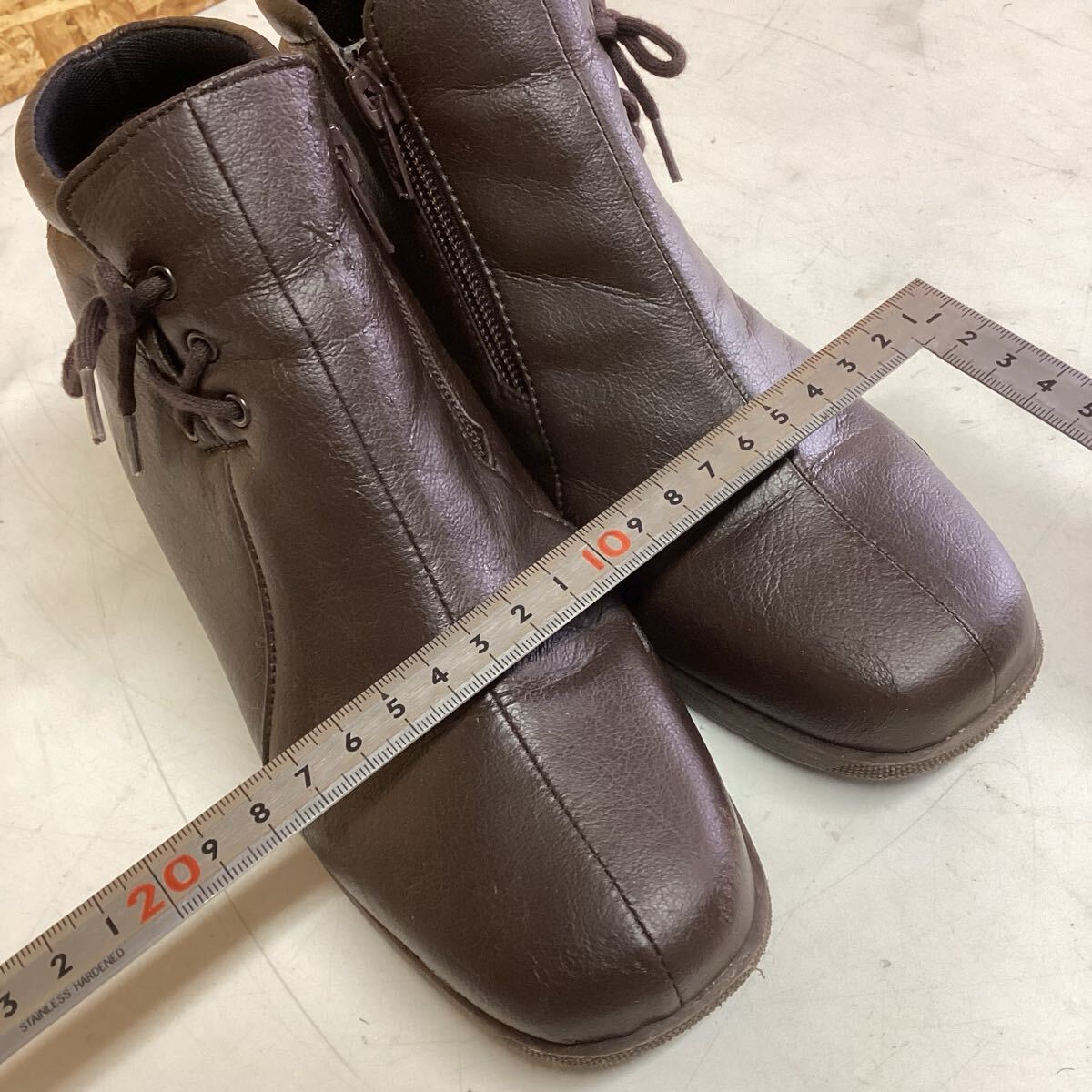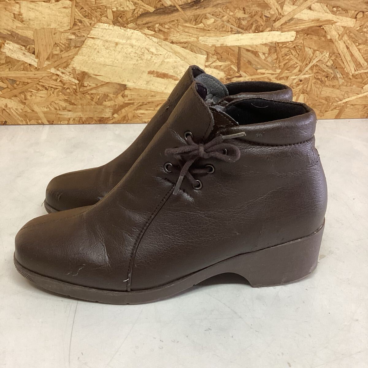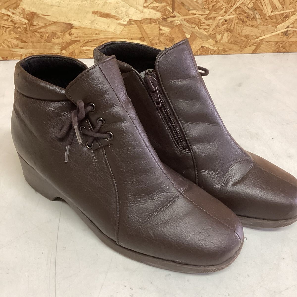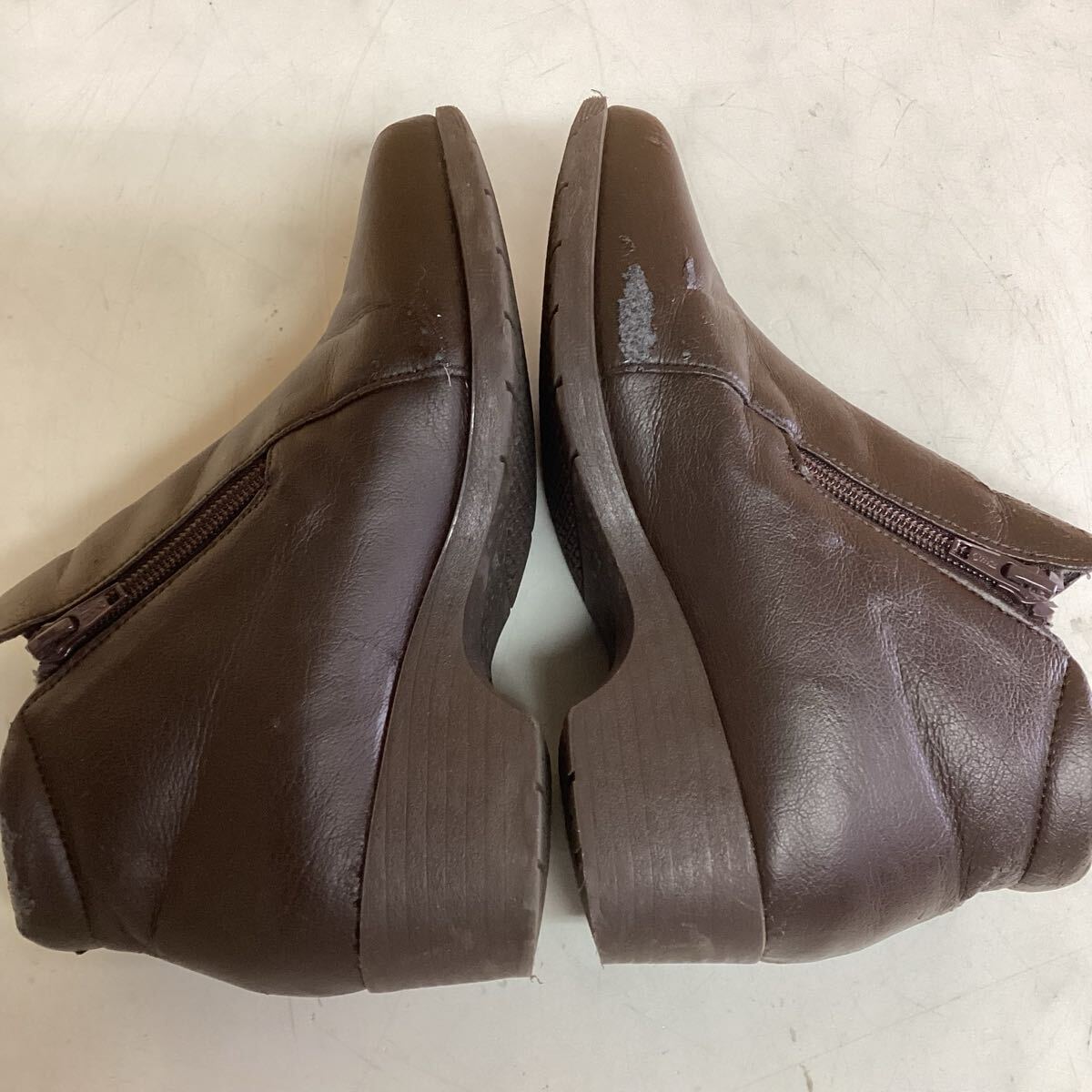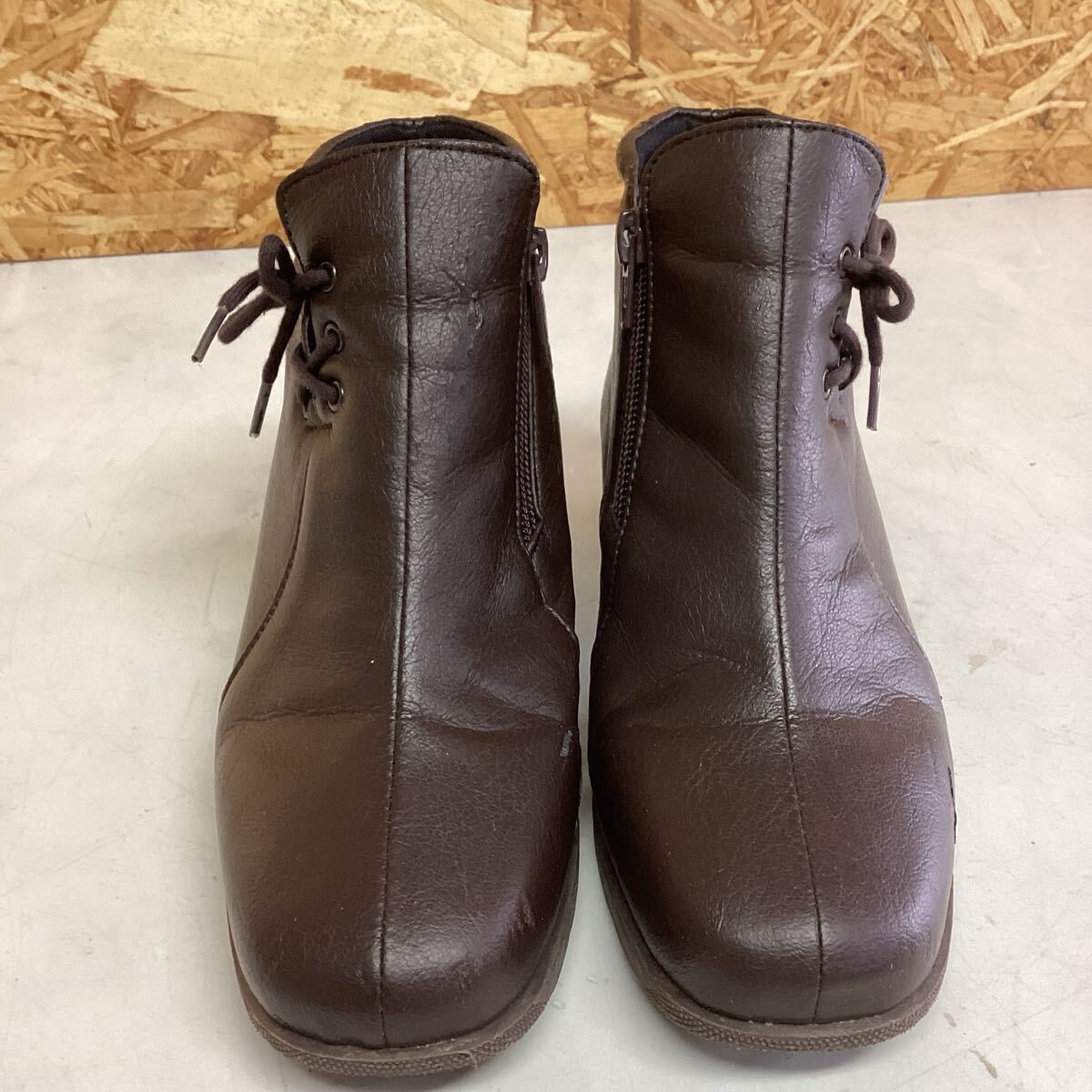 レディース ショートブーツ シンプルブーツ 茶色 23センチ 太ヒール(に70)