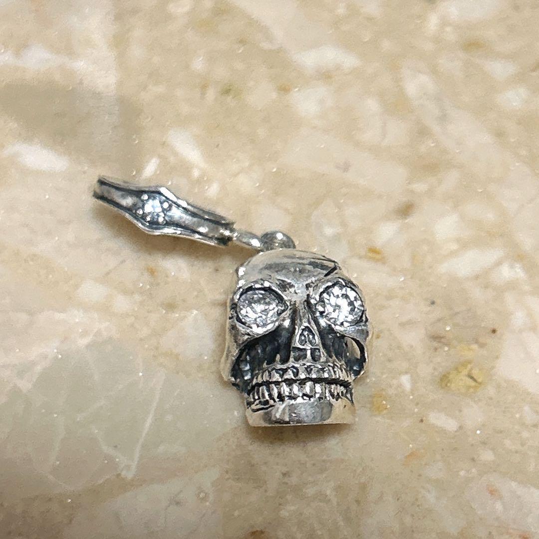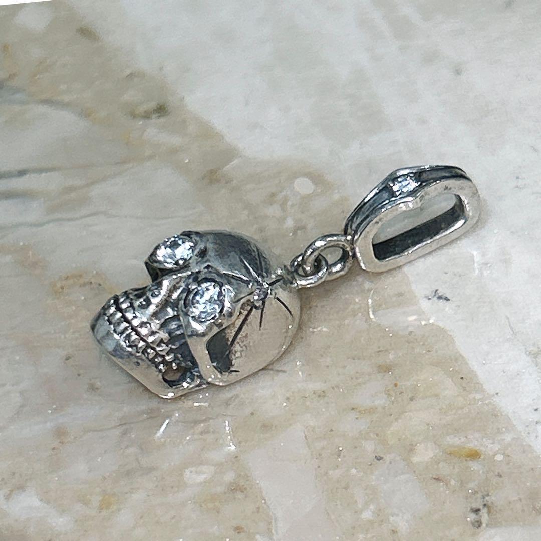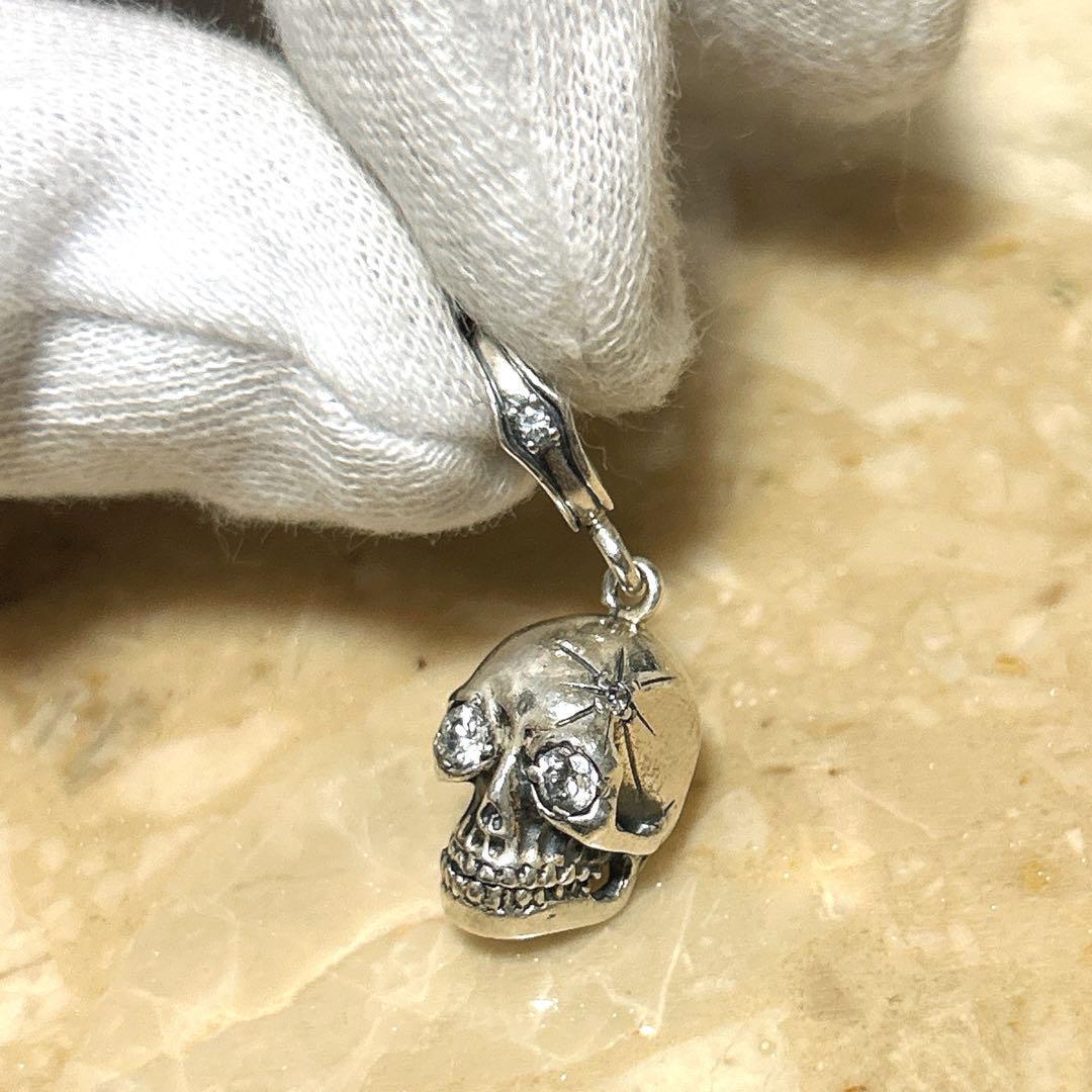 立体的な造形でリアルに作り込まれたシルバー製スカルに、目元にはキラリと光るストーンがセットされた存在感のある一点です。