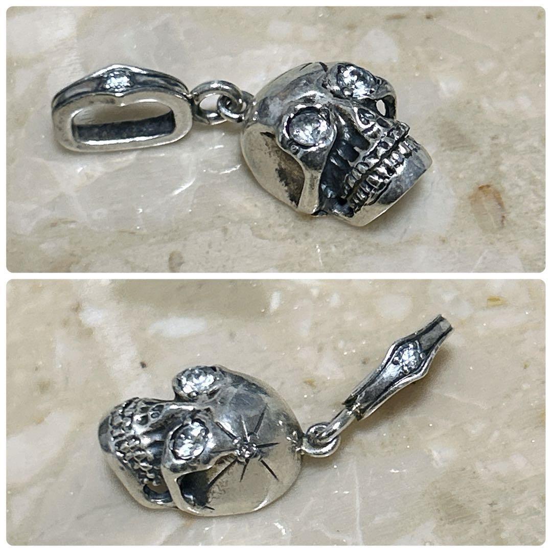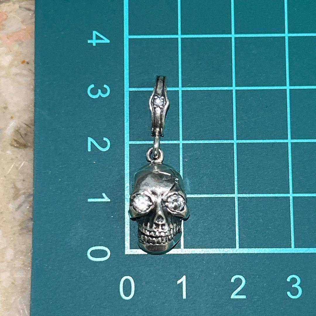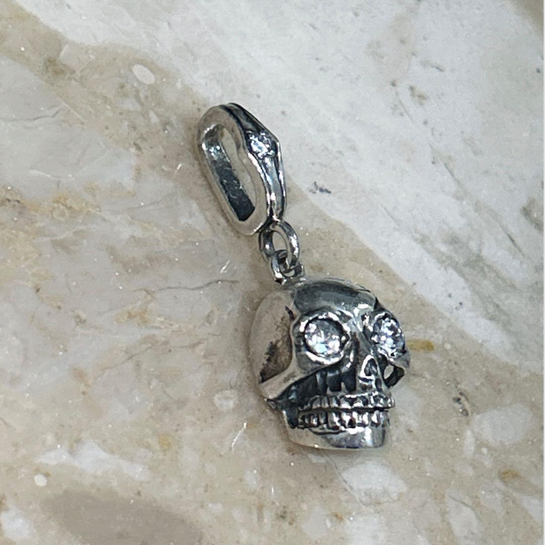 立体的な造形でリアルに作り込まれたシルバー製スカルに、目元にはキラリと光るストーンがセットされた存在感のある一点です。