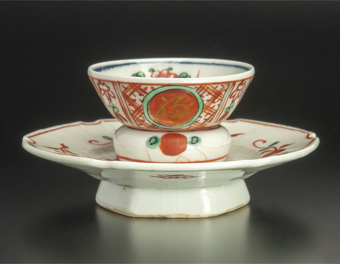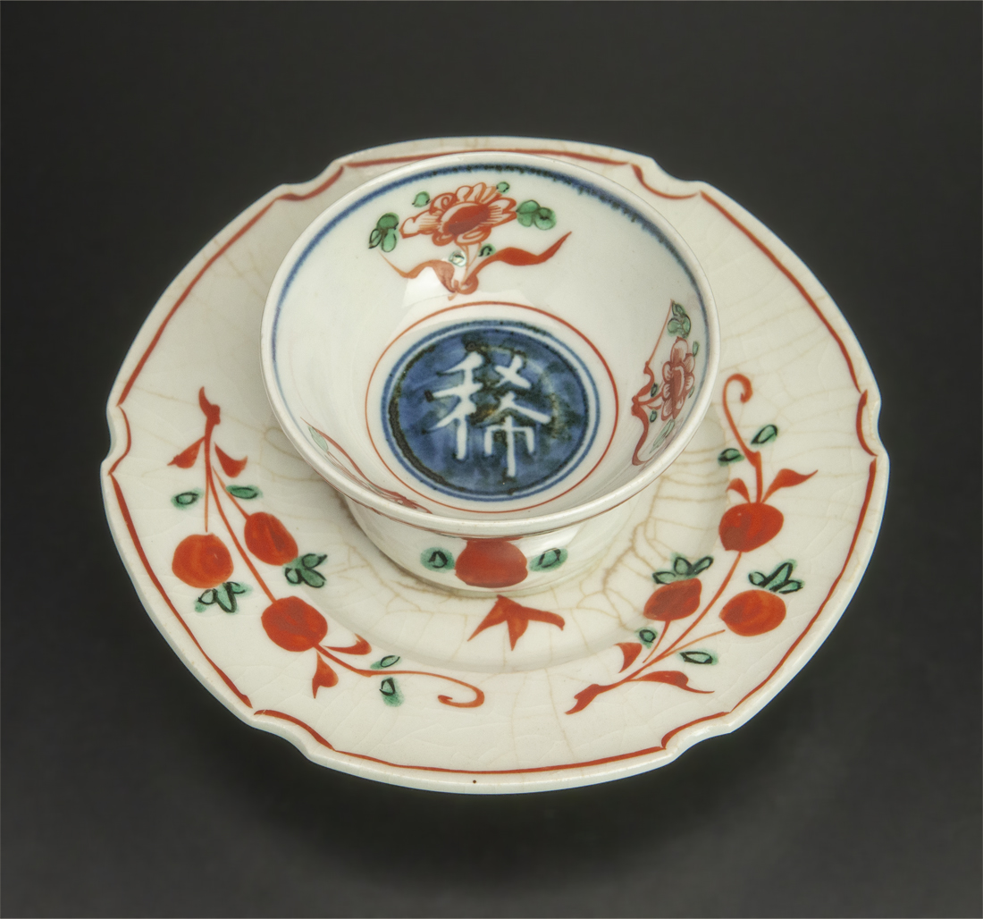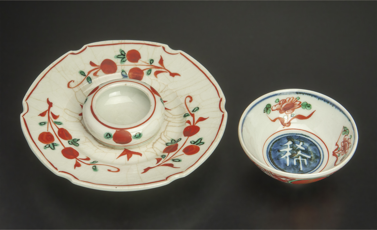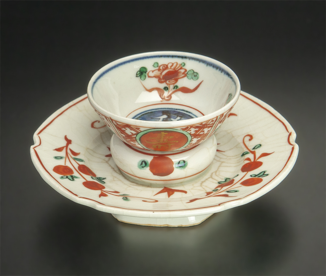 九谷焼 清々軒 初代 矢口永寿 赤絵茶盞 托 煎茶道具 古美術