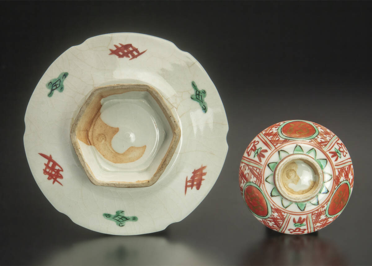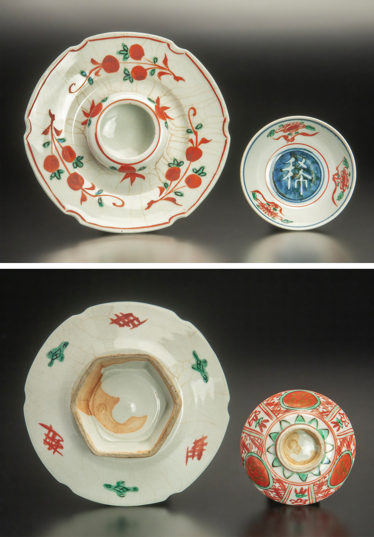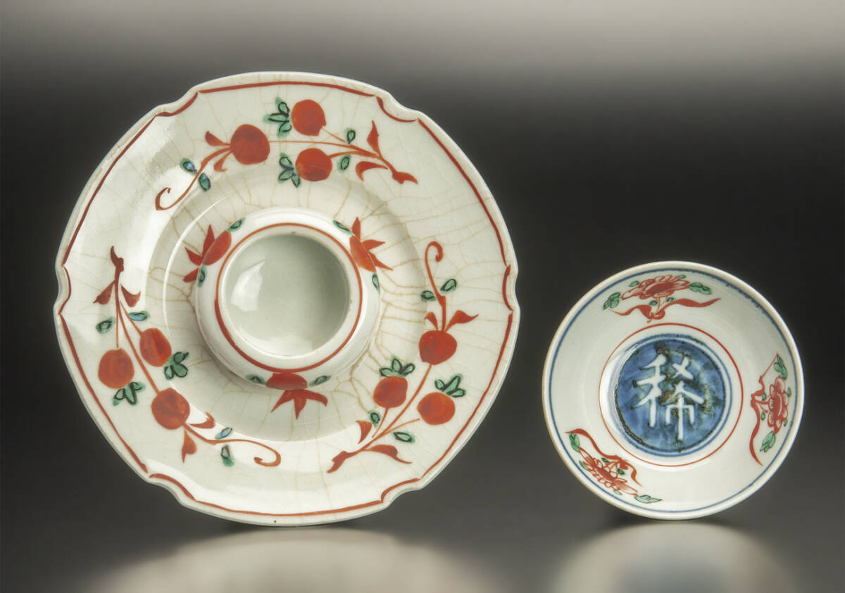 九谷焼 清々軒 初代 矢口永寿 赤絵茶盞 托 煎茶道具 古美術