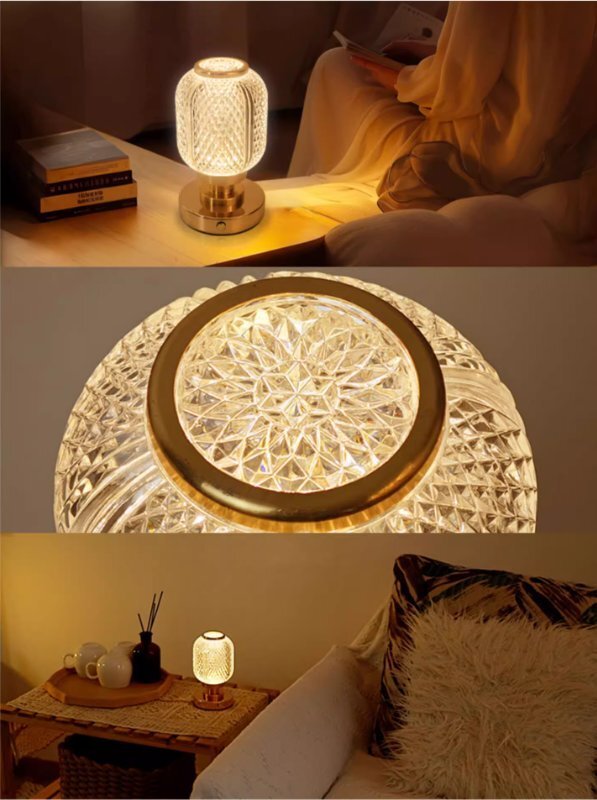 高級感小さなテーブルランプ寝室のベッドサイドランプライトラグジュアリー主寝室ロマンチックナイトスタンドランプクリスタルレトロ