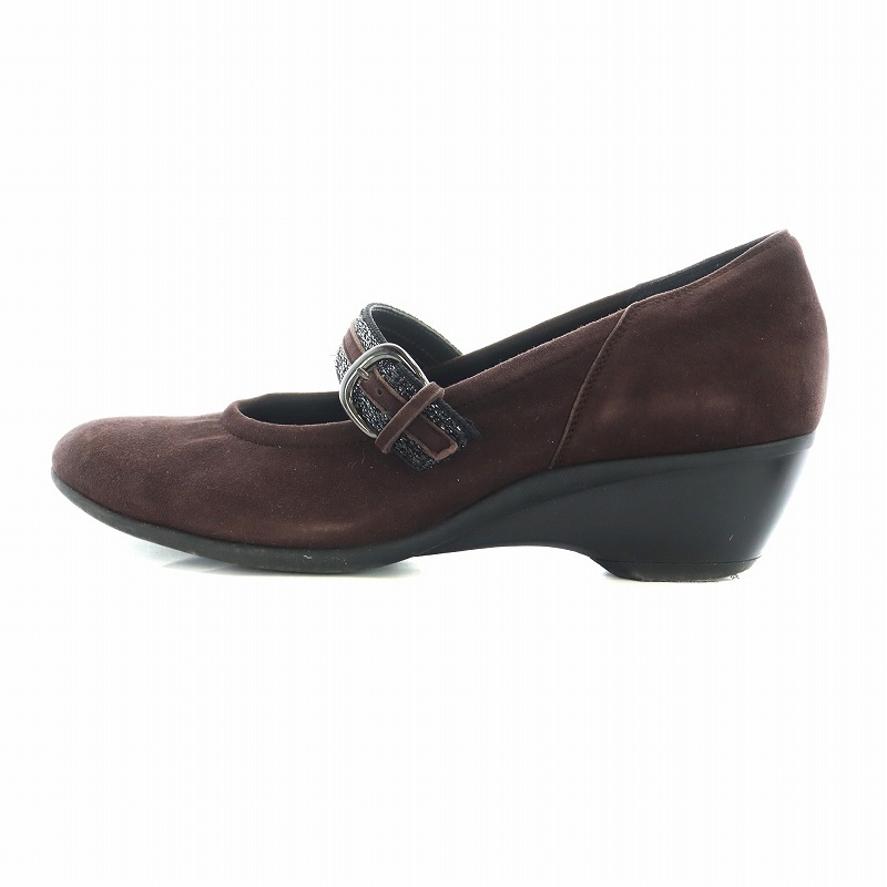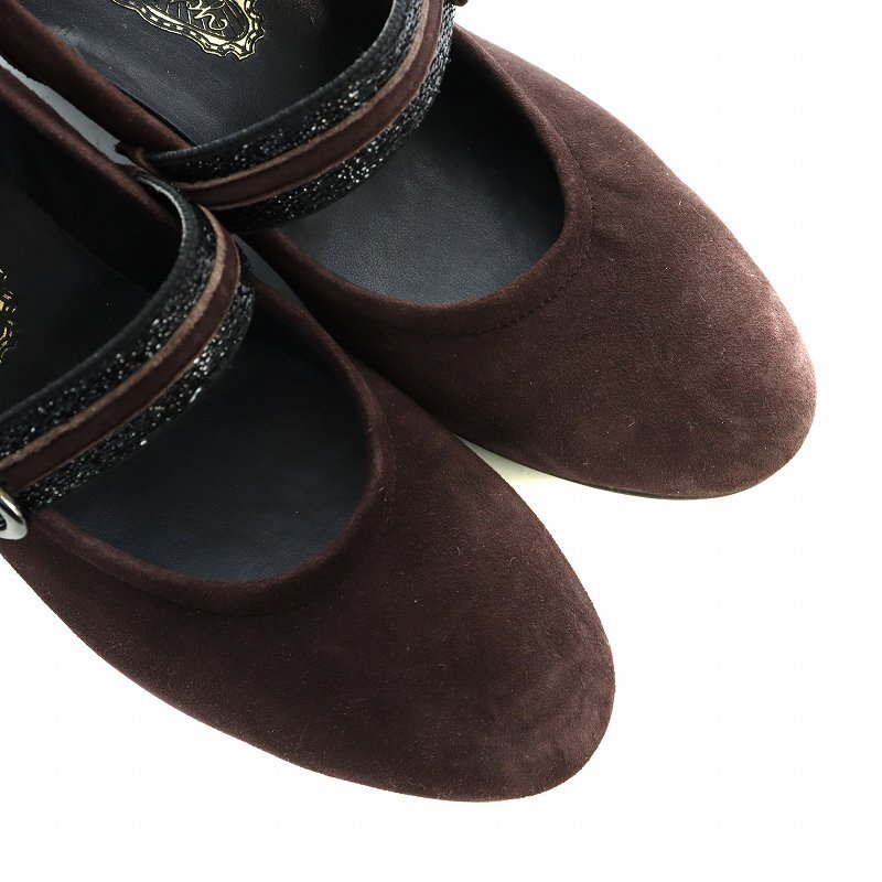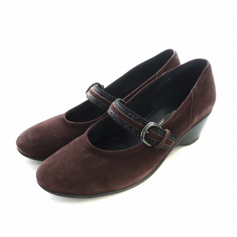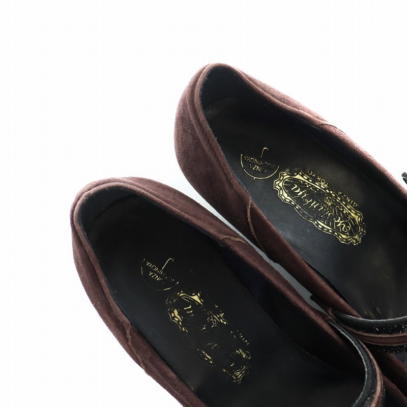 銀座 ヨシノヤ GINZA yoshinoya パンプス ラウンドトゥ スエード ストラップ 24cm 茶 ブラウン ■GY11 /MQ レディース