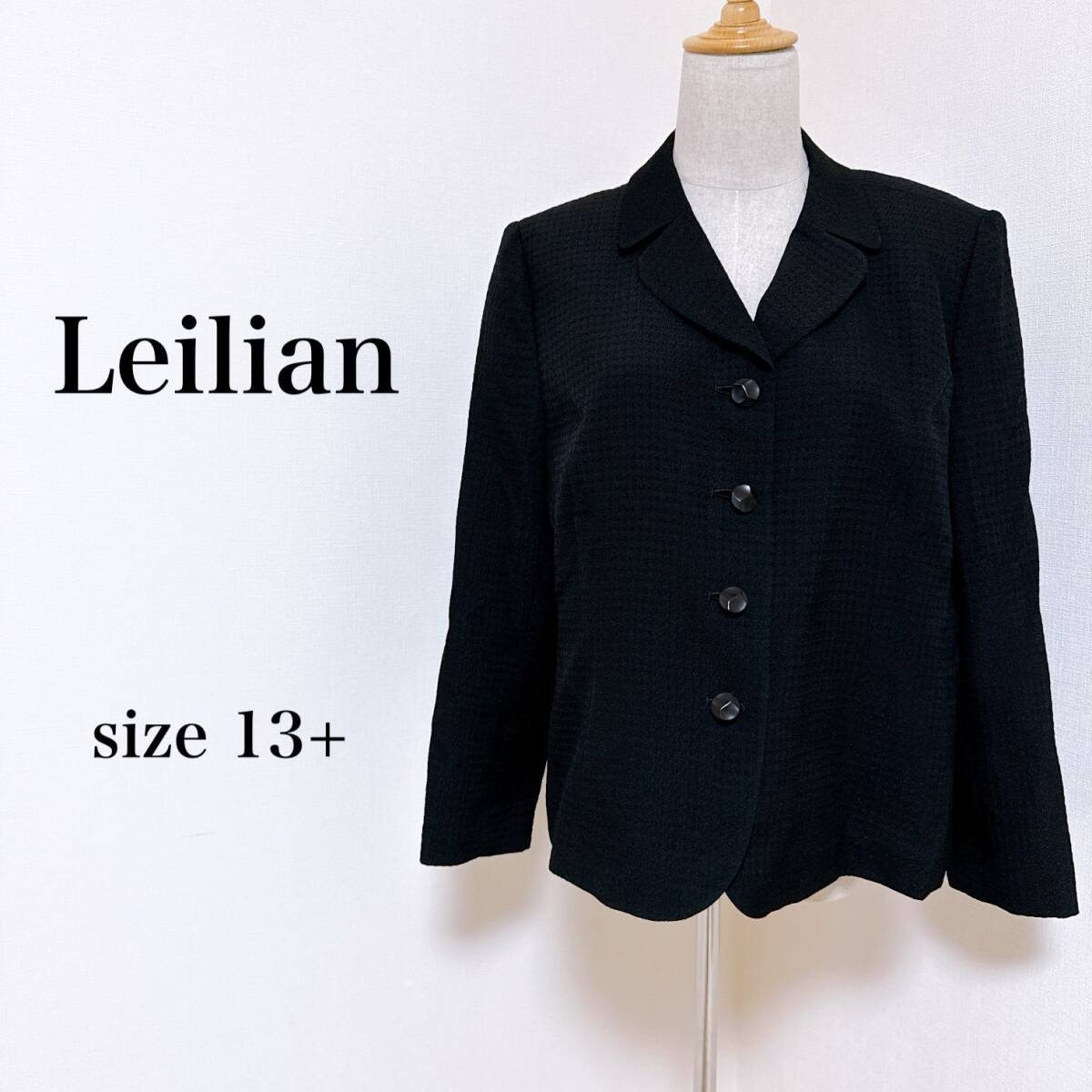 Leilian レリアン テーラードジャケット 薄手 肩パッド ブラック 13 古着