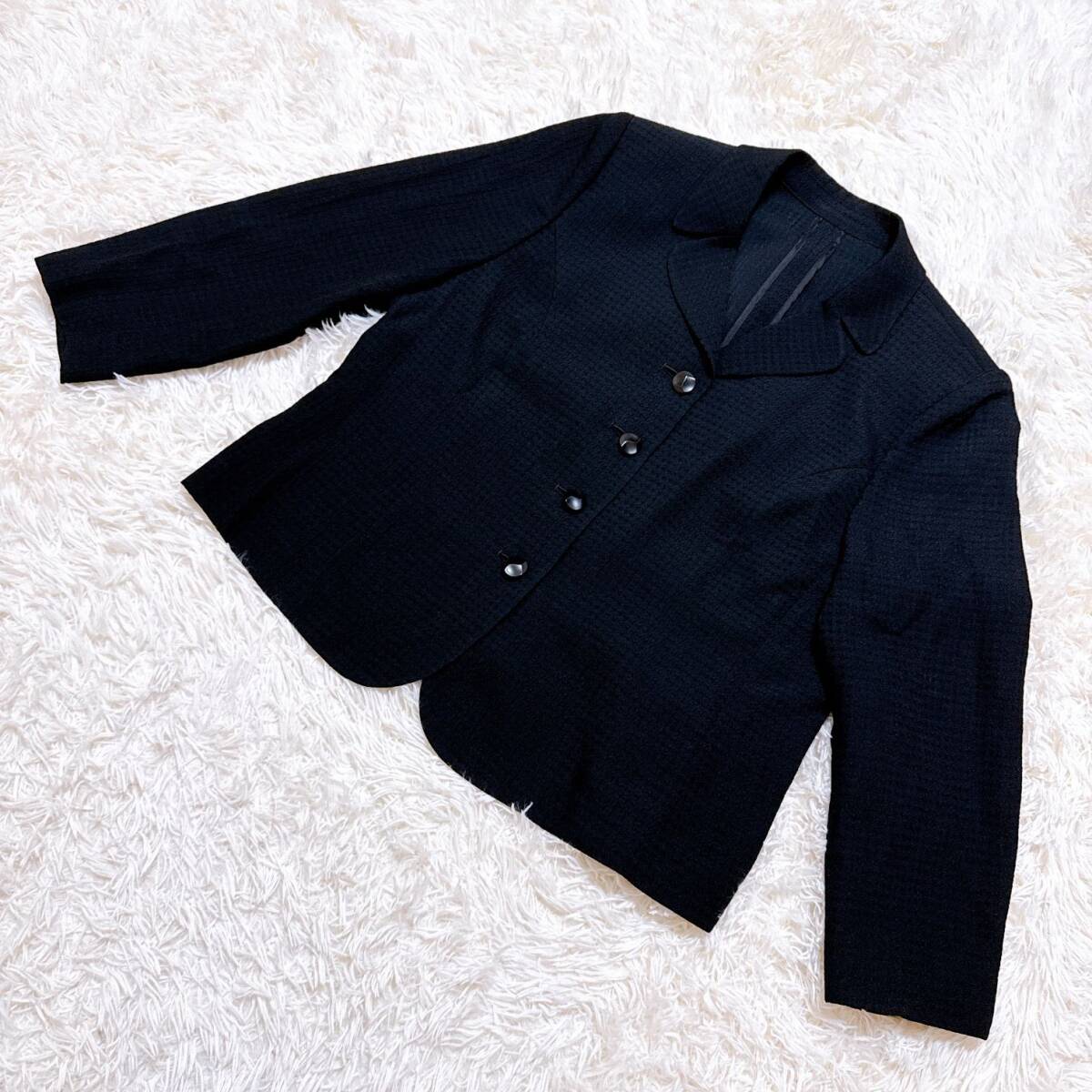 レリアンのテーラードジャケット。ワッフル生地のような素材で、柔らかく軽いジャケットです。肩パッドが入ってるのできちんと感が出ます^_^ ビジネスシーンにもどうぞ^_^