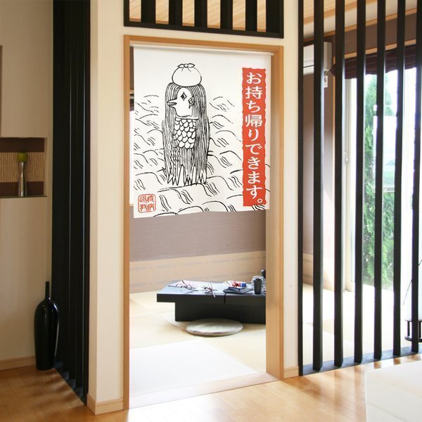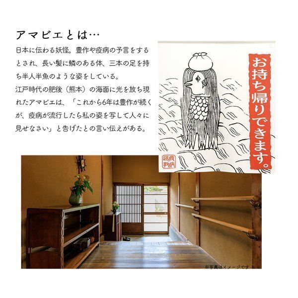 SNSで疫病を防いでくれると話題の妖怪アマビエののれんです