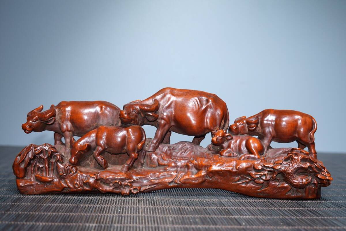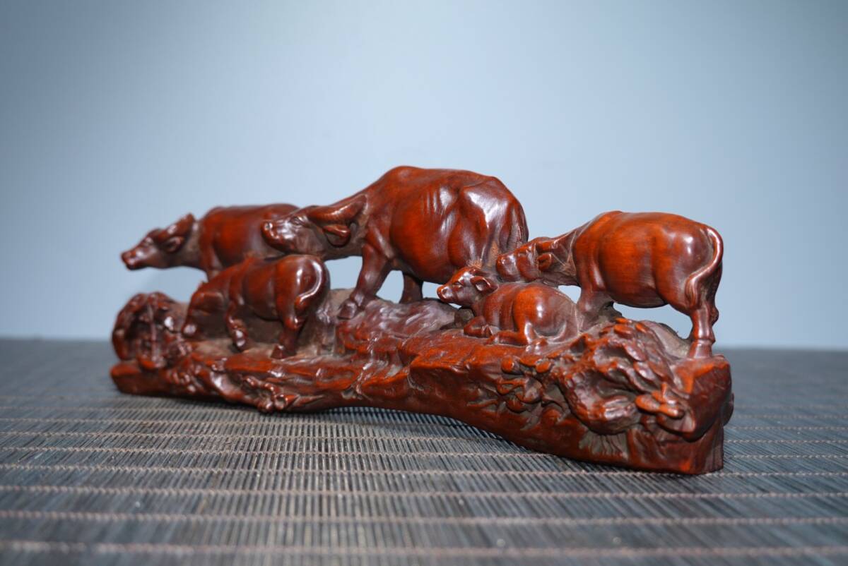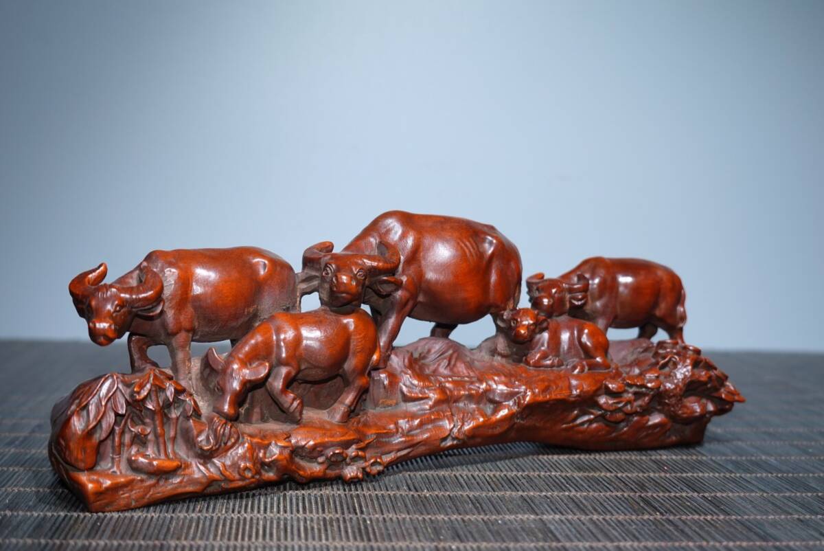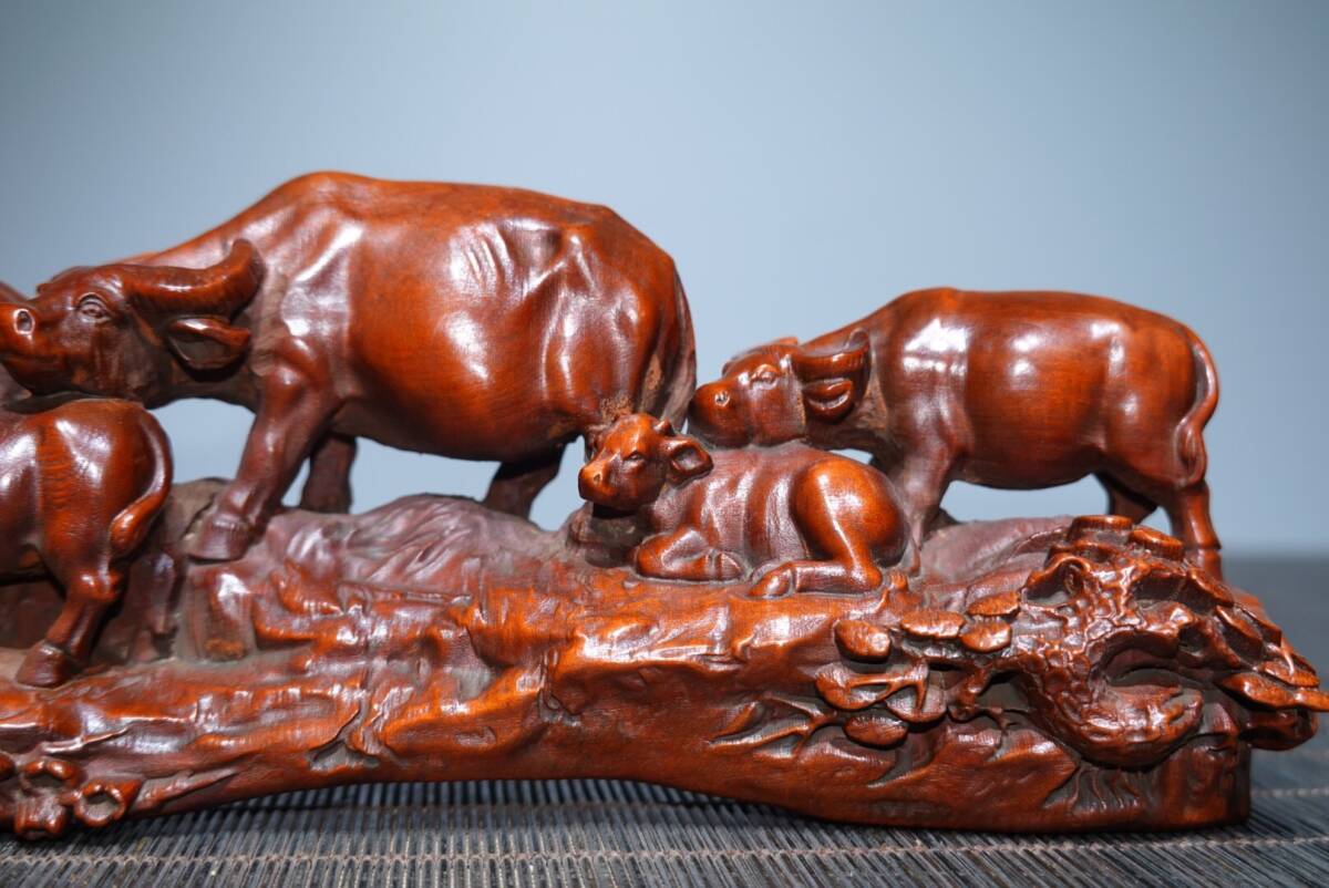 【超珍館蔵】黄楊木製 細密彫 五牛 置物 賞物 古賞物 古美術品 稀少珍蔵品