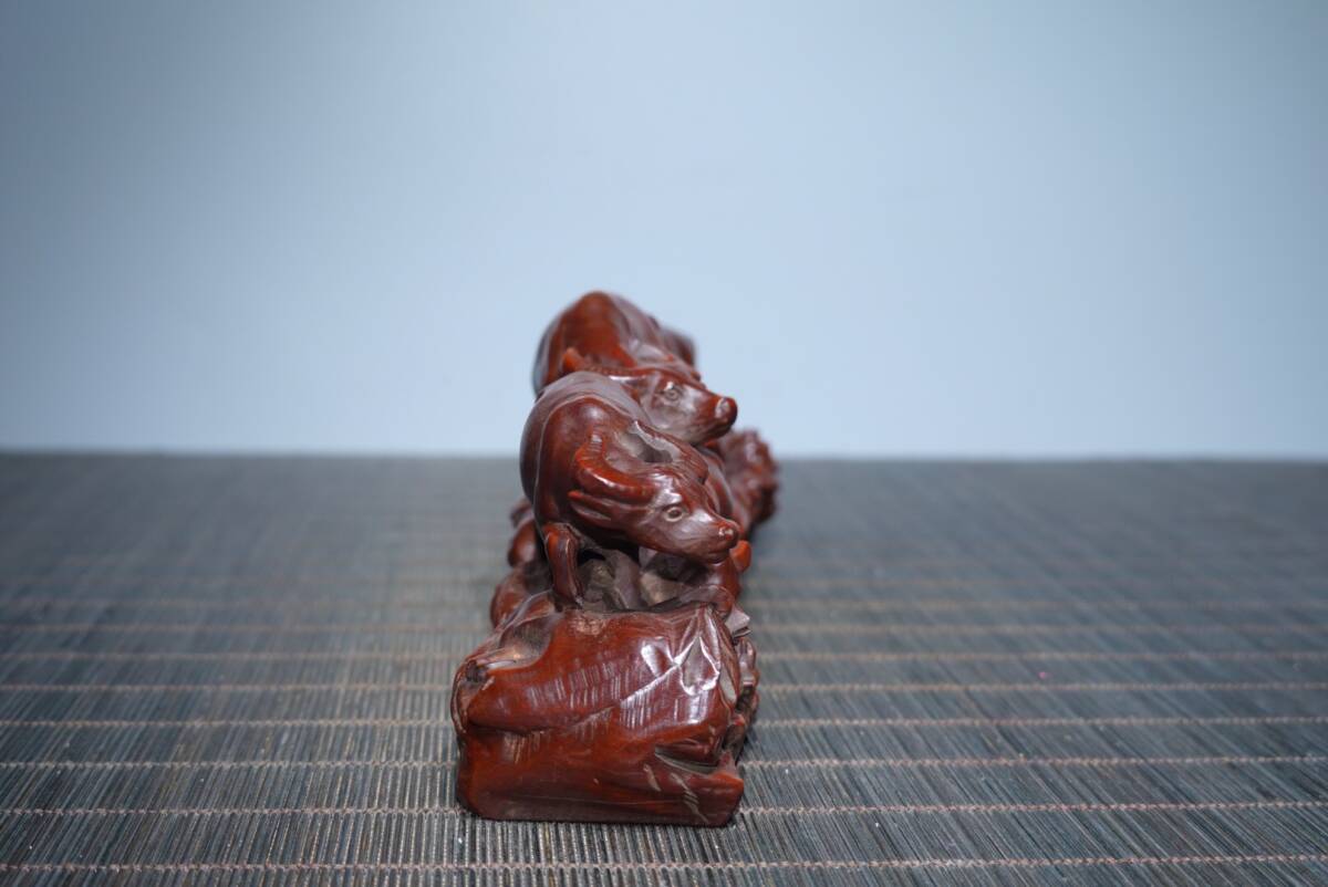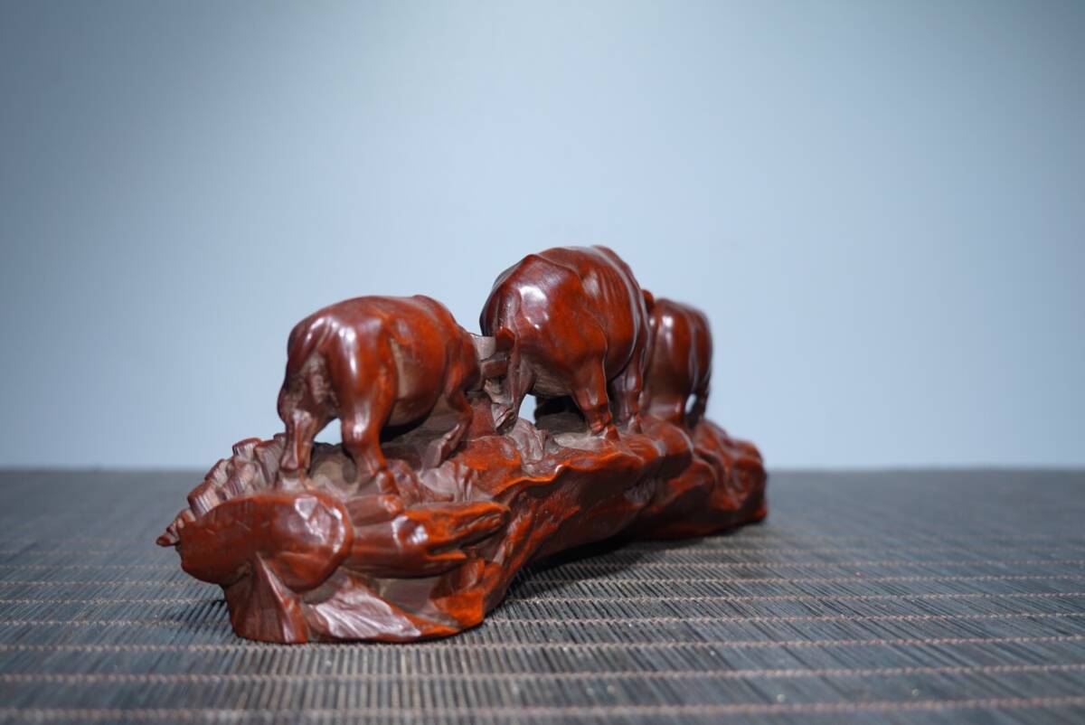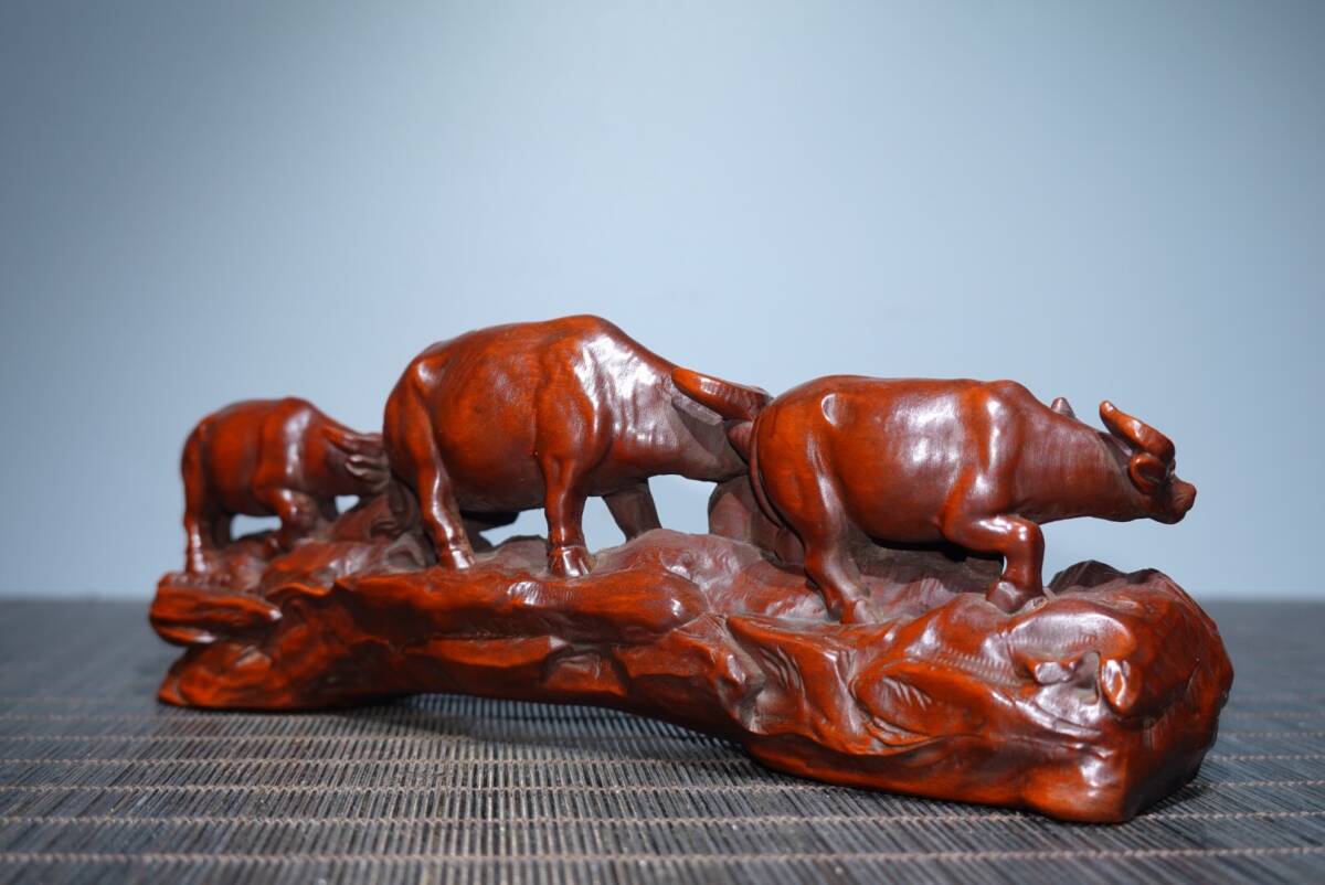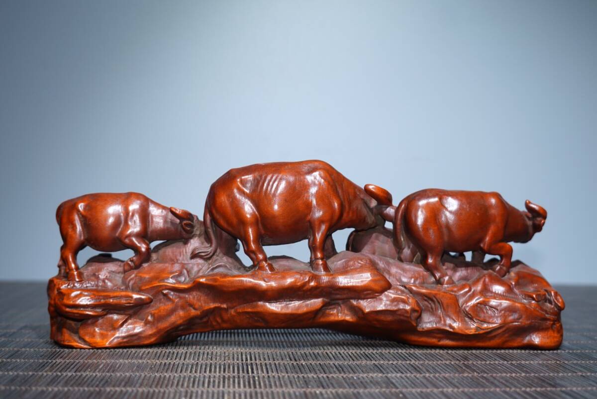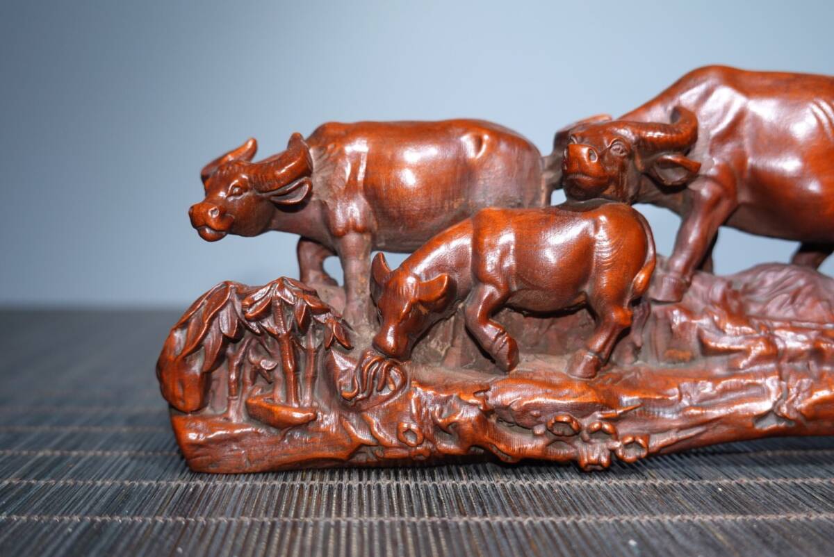 【超珍館蔵】黄楊木製 細密彫 五牛 置物 賞物 古賞物 古美術品 稀少珍蔵品