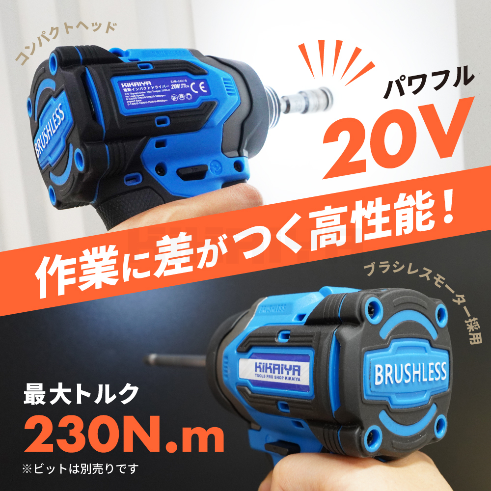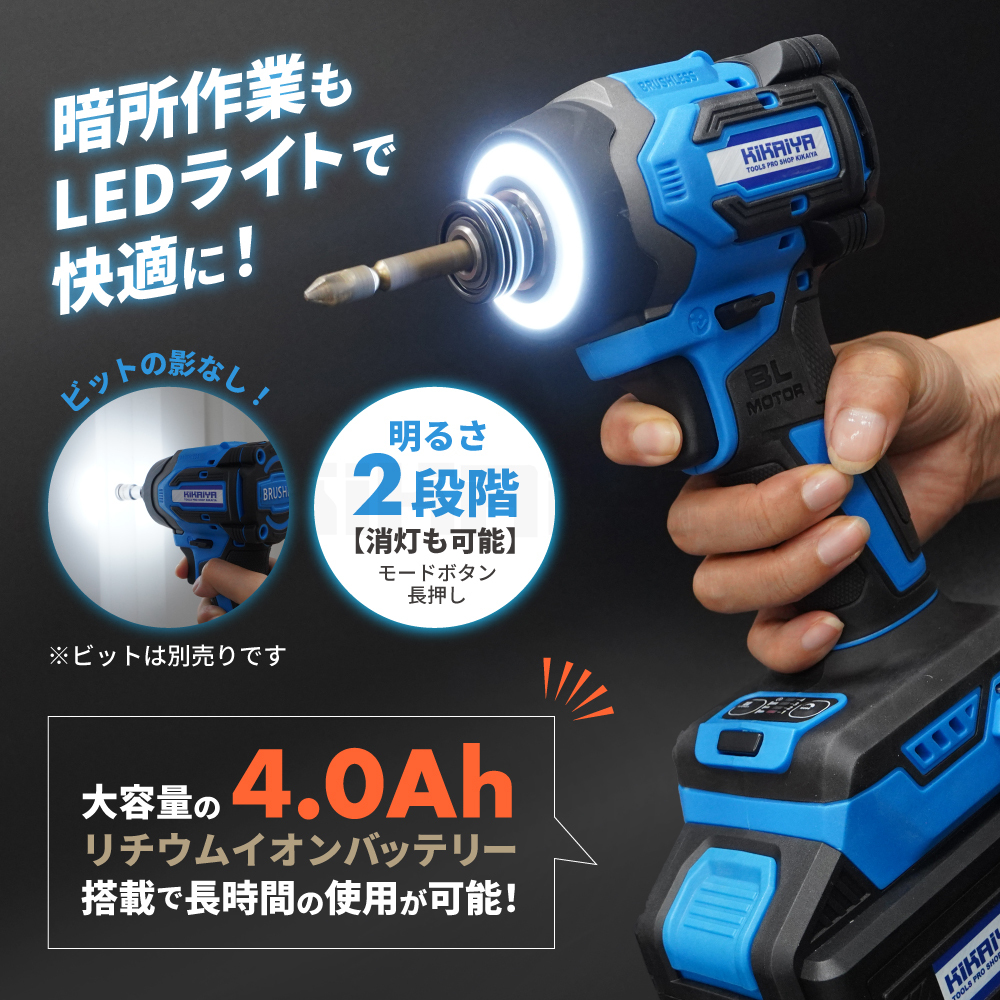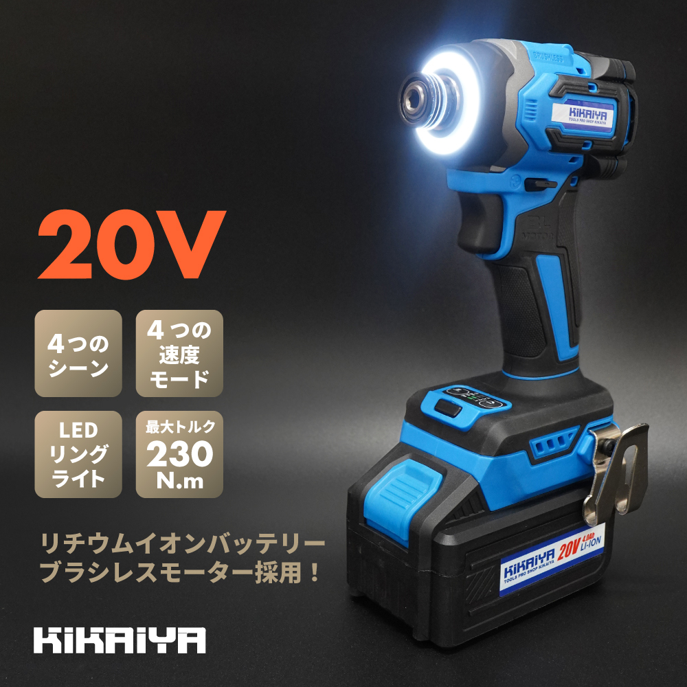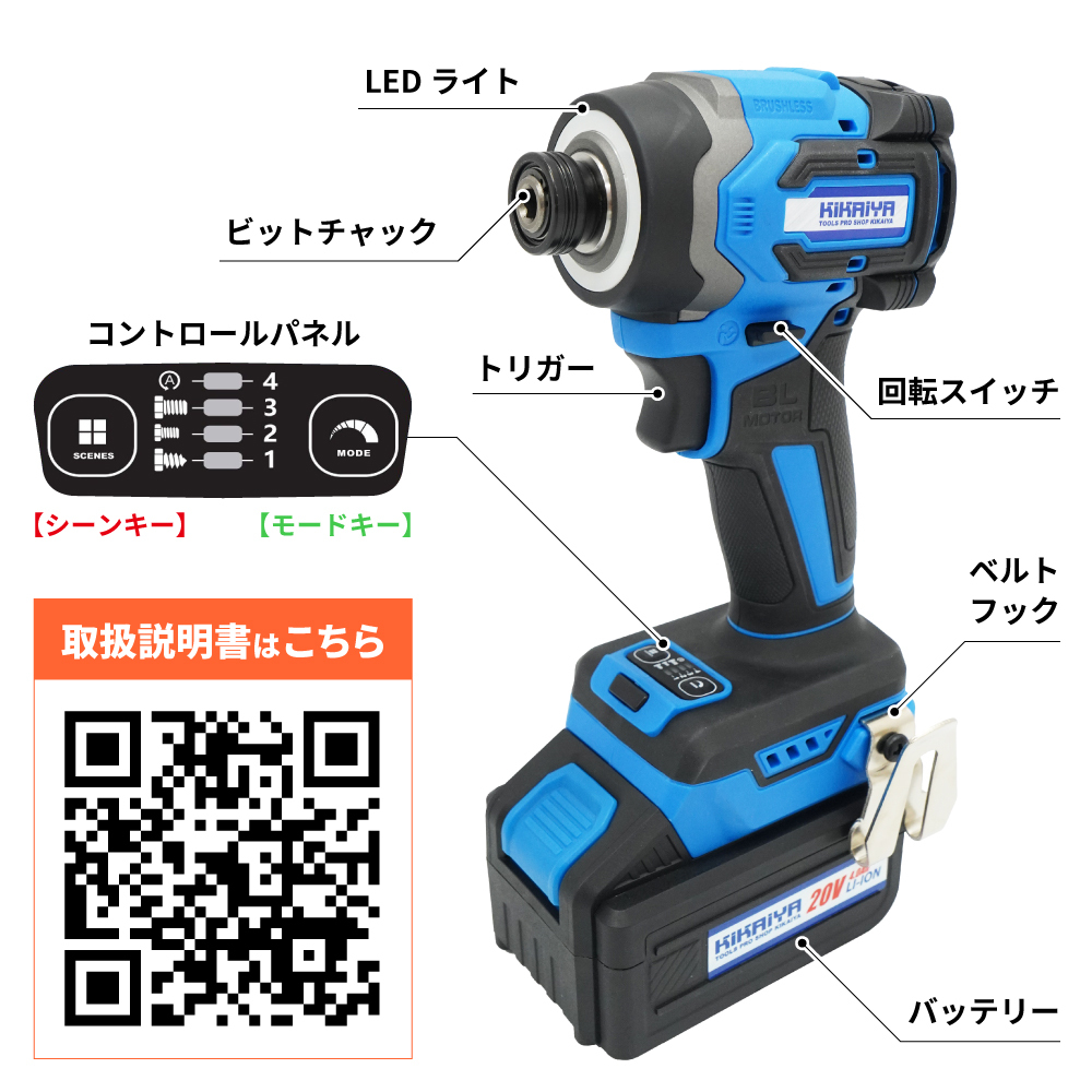 作業に差がつく高性能! 大容量4.0Ahバッテリーのインパクトドライバー ●長寿命で速度制御が安定しているブラシレスモーターを採用 ●コンパクトなのに20Vのハイパワーで、最大トルク230Nmを発揮します ●コードレスでどこでも持ち運びでき、様々な現場で使用可能 ●大容量4.0Ahのリチウムイオンバッテリーを搭載しているので連続約20分間使えます ●電池切れ防止をサポートする電池残容量表示機能付き ●トリガーを引くとLEDリングライトが点灯し、暗所でも作業が快適 ●トリガーは可変速度で、加える圧力によって回転数を調整可能 軽く押すと速度は低く、さらに押すと速度が上がります ●4つの作業シーンと4つの速度モードがあり、作業にあった最適な選択が可能です ●木材シーンは低速から速度上昇、鉄板シーンは最大速度で駆動します ●回転スイッチで正逆の回転切替ができ、 逆転オートストップ機能でビスやボルトの緩めすぎを防止することができます ●ビットはチャックにワンタッチで装着でき、リングを引っ張ると簡単に抜けます ●今ならステップドリル3本セットプレゼント! |