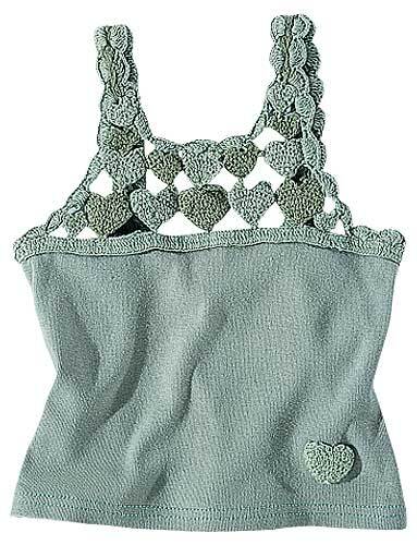 濃淡のハートモチーフのクロシェット編みが涼しげなタンクトップです。