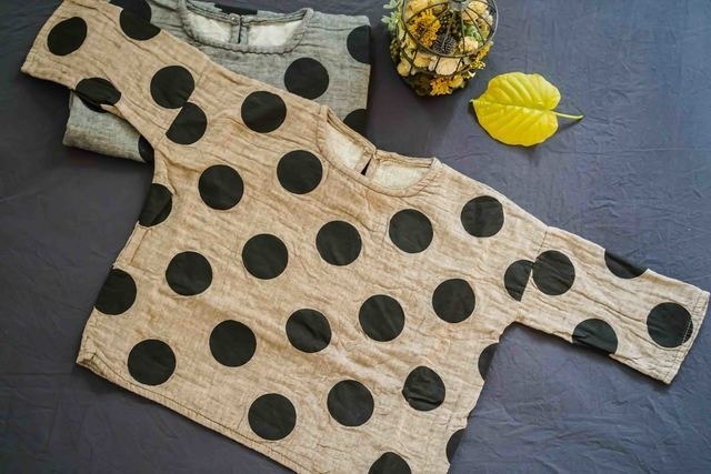 綿麻二重ガーゼのドット柄Tシャツ