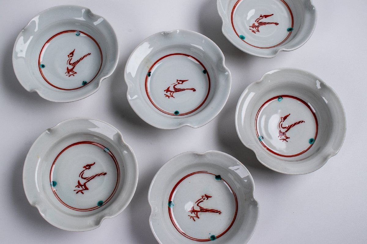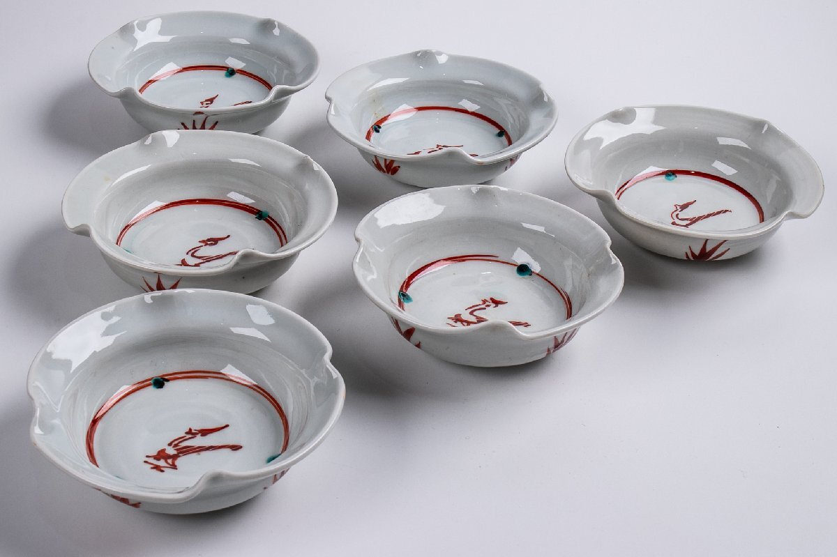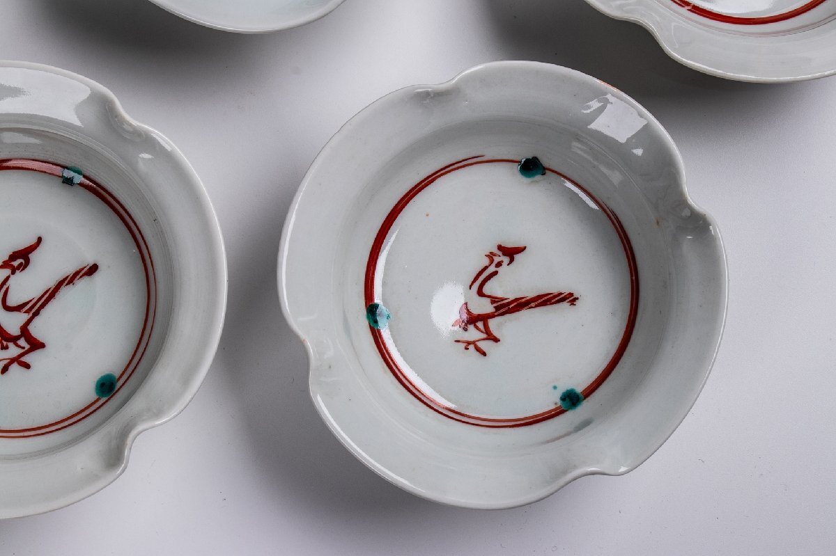 【うつわ】 廣永窯 赤絵きじ文向付 6客 共箱 E1903 古美術 骨董 時代物 古玩 唐物 日本料理 懐石