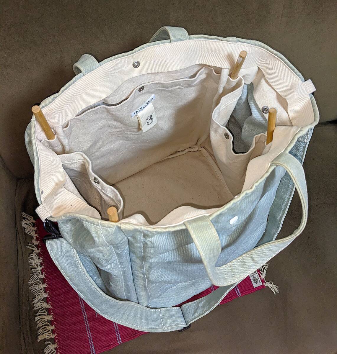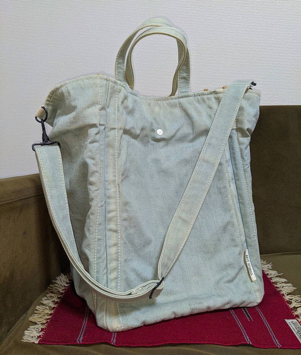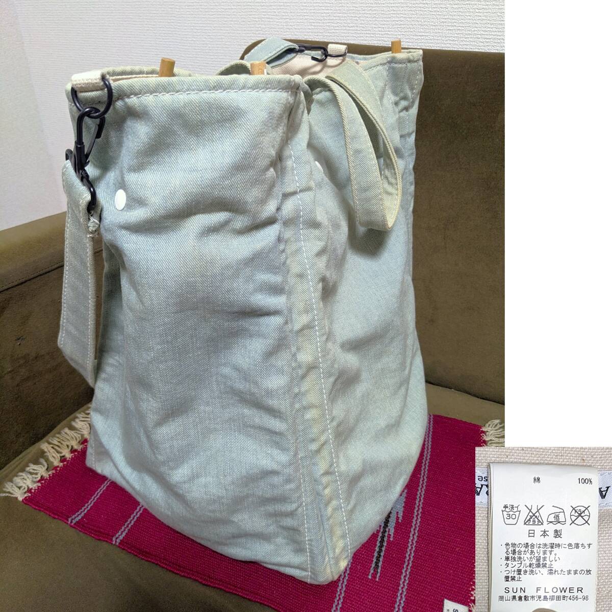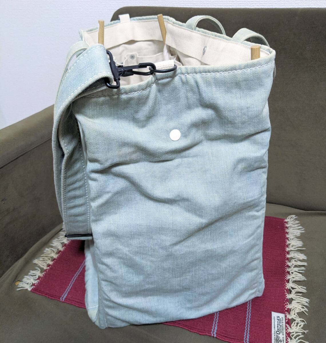 ・裏地側が、生成りのキャンバス地とのコンビネーションも、ナチュラルな雰囲気の良さが出ていますし、日本が誇るデニム産地の岡山/児島産のバッグだけあって、クラフトワークな温かみがあり、細部の作りもハイクオリティーなバッグなので、是非おススメします♪