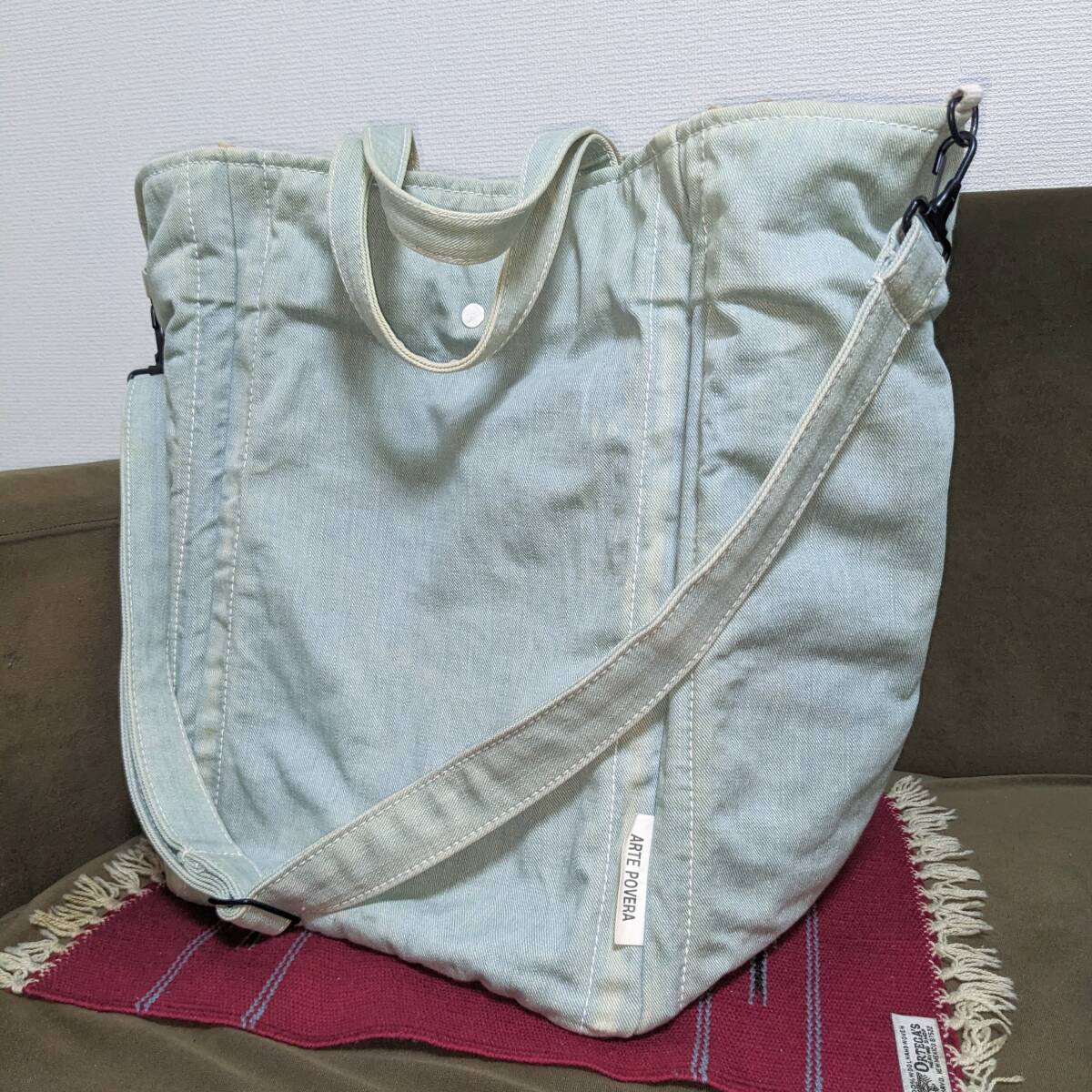アルテ・ポーヴェラ ポーべラ ARTE POVERA ★ユニセックス デニム風ベビーツイル地 ランドリーバッグ 2WAYショルダー&トート型 芯棒付き