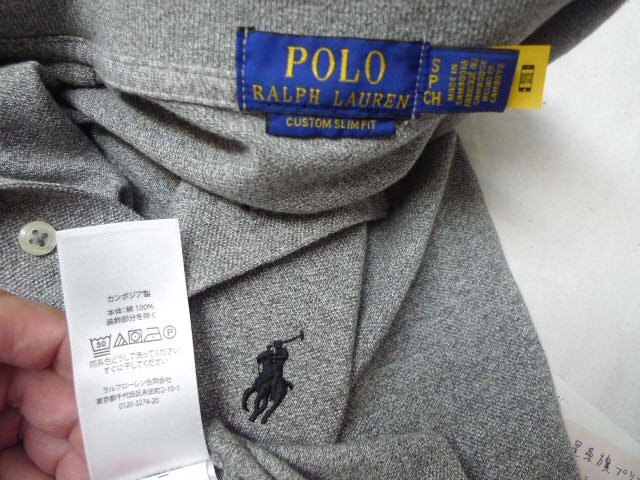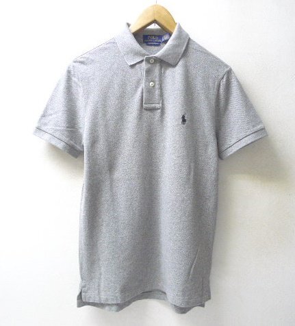 ◆ ◆国内正規 POLO RALPH LAUREN 美品 ポロラルフローレン ロゴ刺繍 鹿の子 ポロシャツ グレー サイズS
