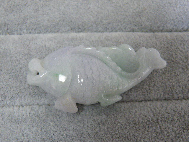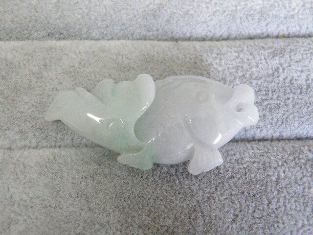 94131.天然ミャンマー産 ヒスイ 魚 ネックレストップ 未使用