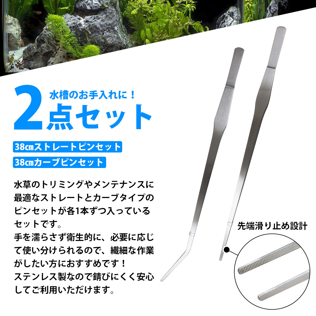 2点セット 【38cm 380mm ピンセット 2種類 ストレート カーブ型】 水槽 水草トリミングキット