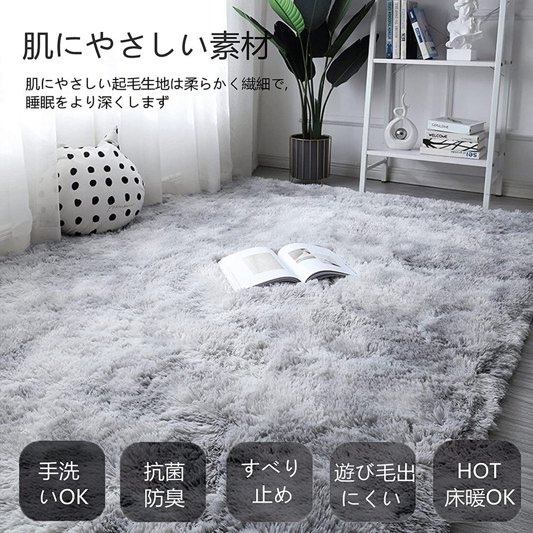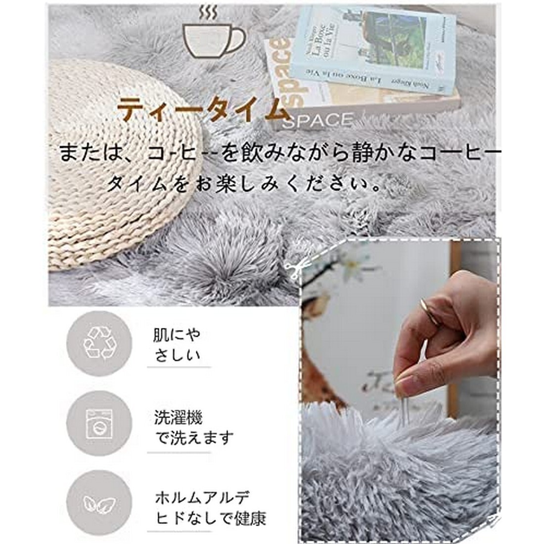 ・色:ライトグレー・【フワフワで暖か】:極細繊維素材100%で、ふわふわで弾力性にも優れています。毛足が長いですが、コロコロでも毛が抜けないので掃除しやすいラグです。掃除機をかければゴミも絡まずきれいになります。夏用の冷房対策、冬は床暖房・ホットカーペット対応。