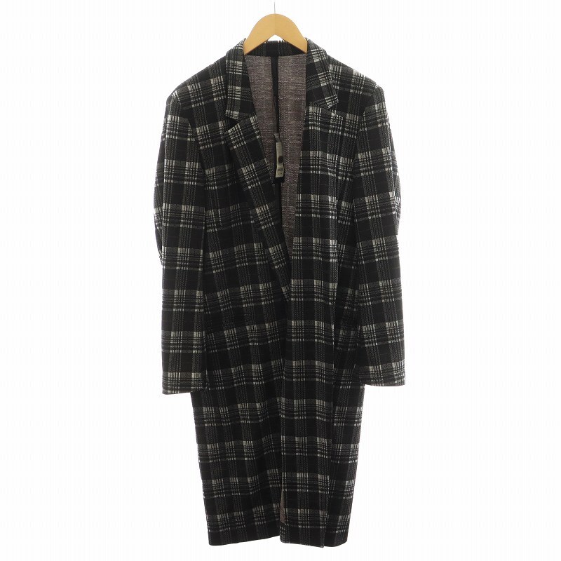 未使用品 ガラアーベント GalaabenD ジョーゼットストレッチチェックガウンコート チェスターコート ロング丈 M ダークブラウン