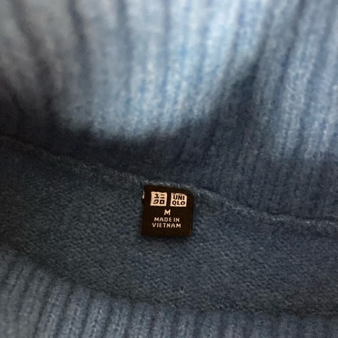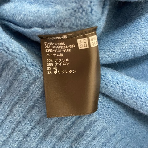 ユニクロ UNIQLO ニット セーター 長袖 ハイネック 無地 ウール混 251-461082 M 青 ブルー レディース