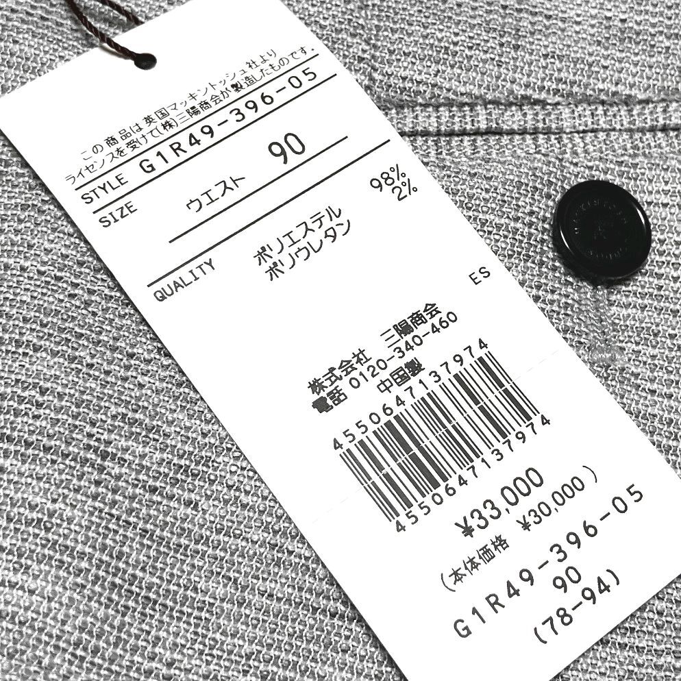 新品 MACKINTOSH LONDON マッキントッシュ ロンドン カラミ織りレノクロス トラウザーズ パンツ 90 ライトグレー系 定価33,000円