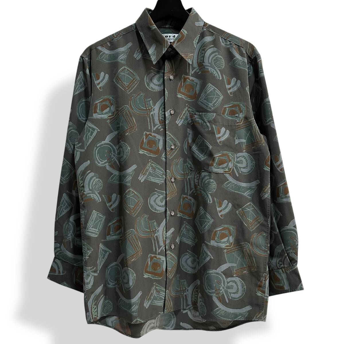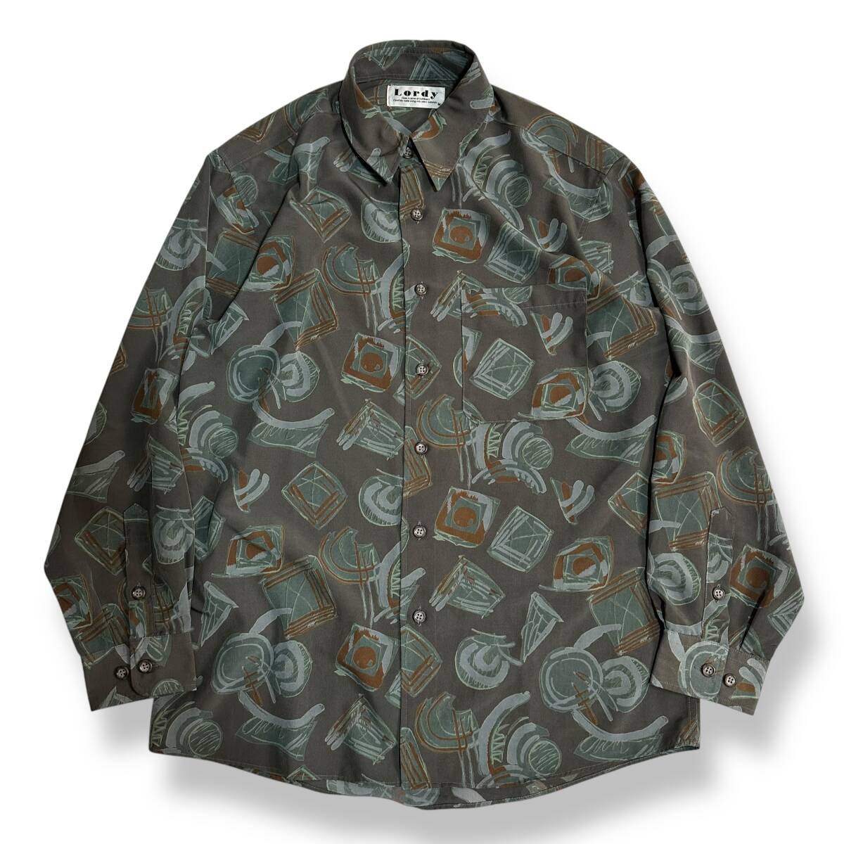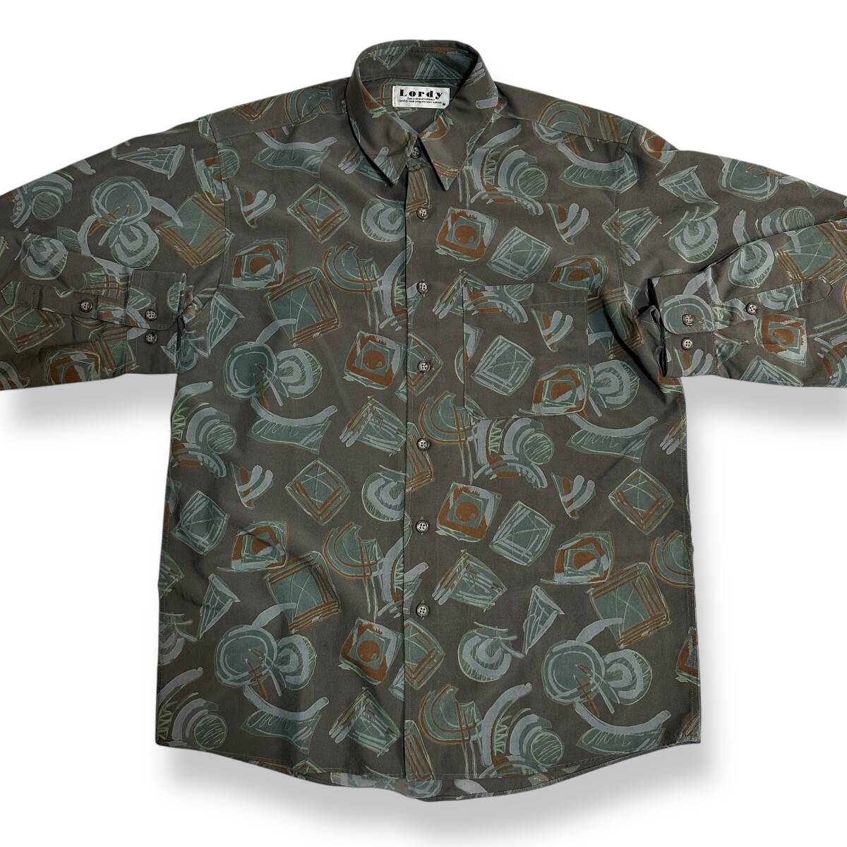 良好 貴重【Lordy】VINTAGE 80s 90s アート 総柄 ビンテージ長袖シャツ 古着 オールド レトロビンテージ ポリシャツ 昭和レトロ