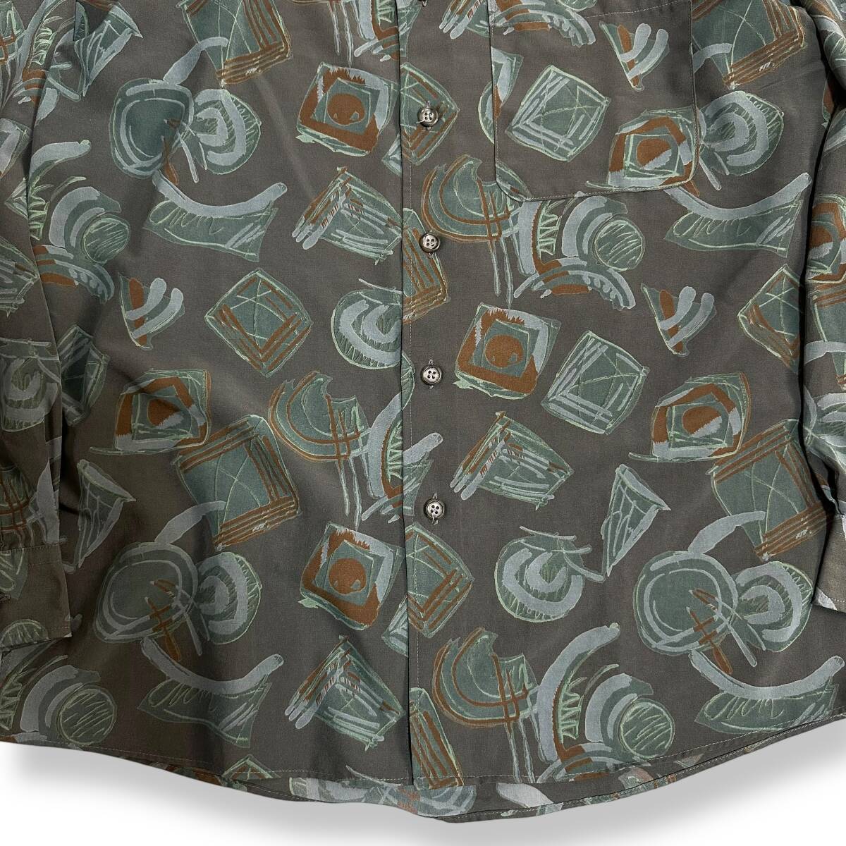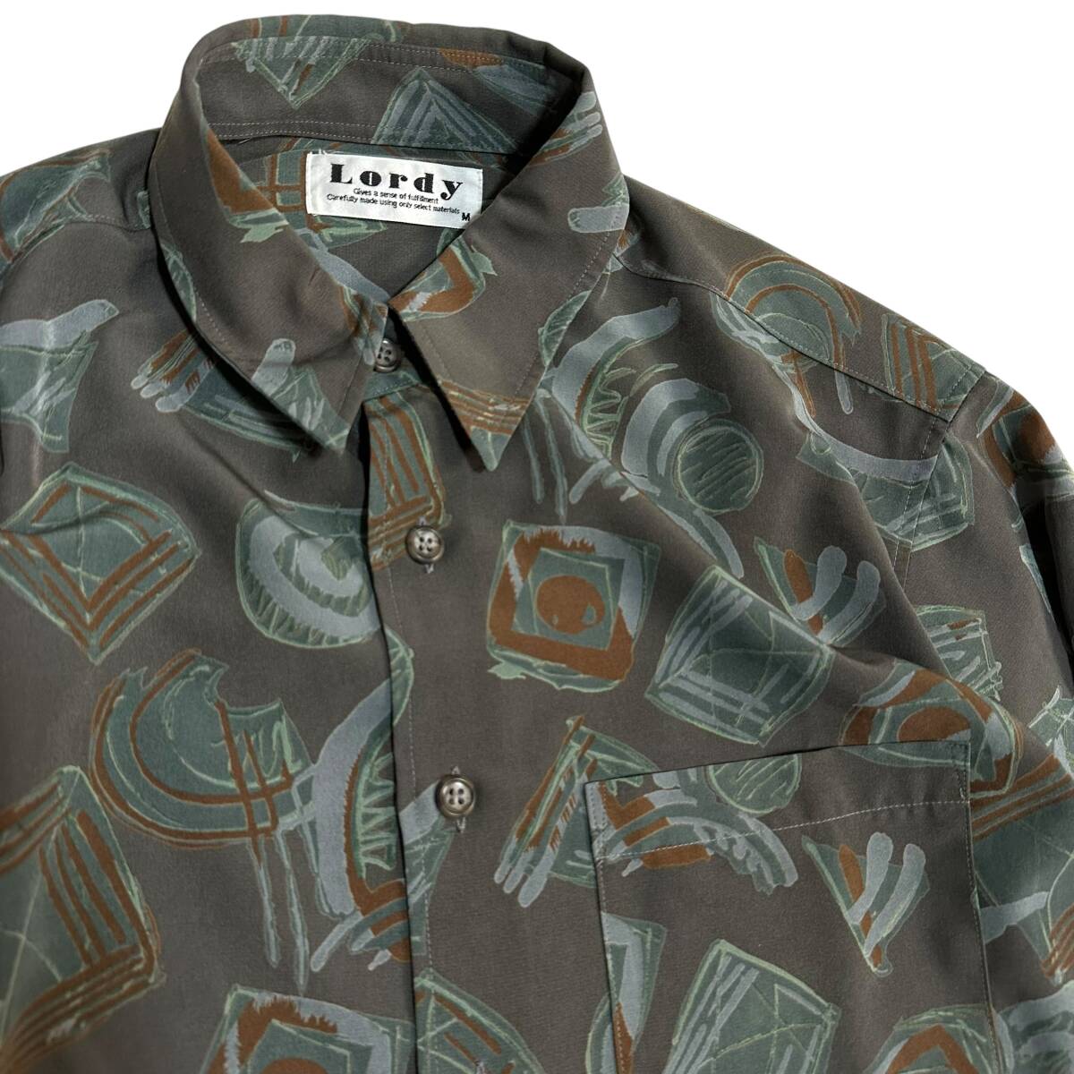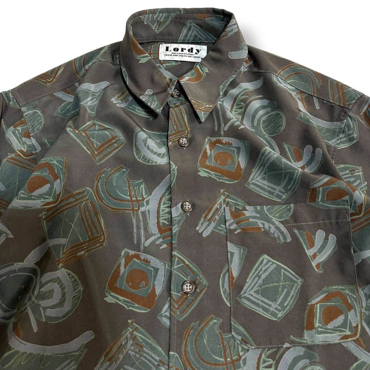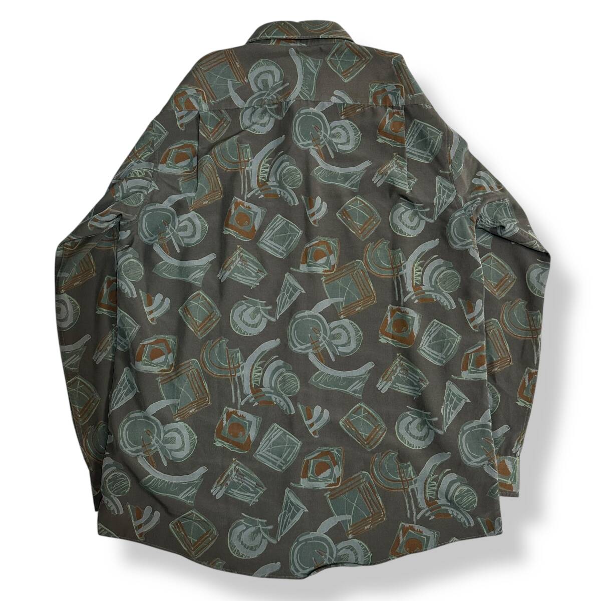 良好 貴重【Lordy】VINTAGE 80s 90s アート 総柄 ビンテージ長袖シャツ 古着 オールド レトロビンテージ ポリシャツ 昭和レトロ