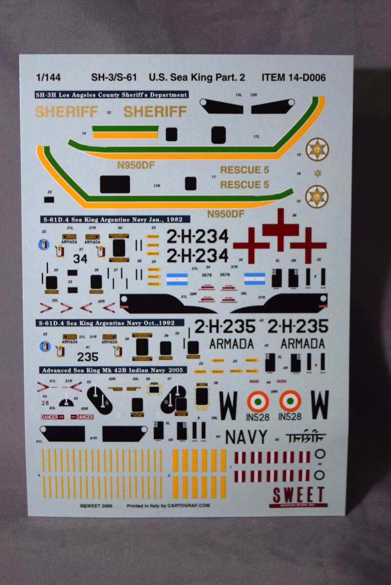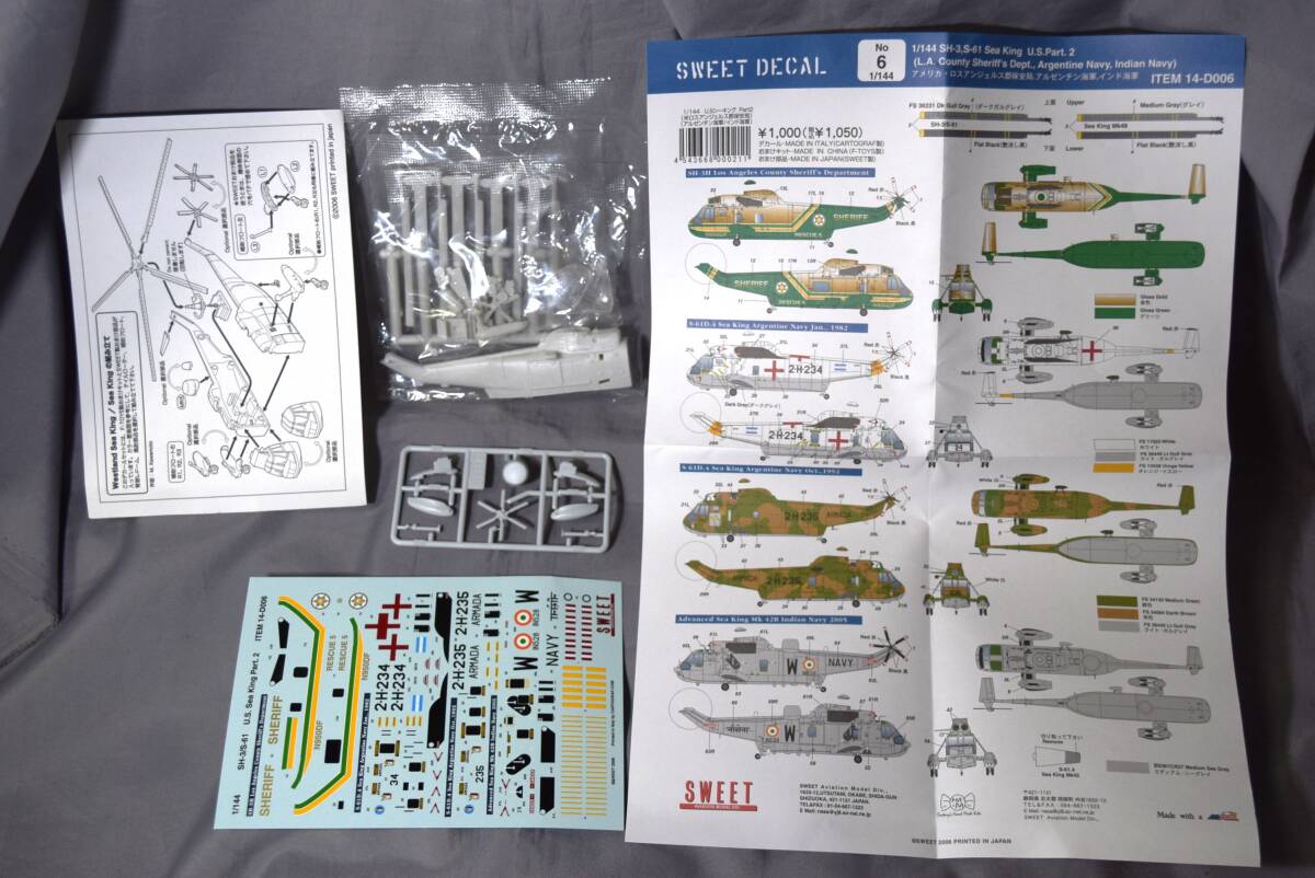 ■稀少1/144オマケkit含2機 SH-3/S-61シーキング SWEET DECAL 6 カルトデカール付(ロスアンジェルス郡保安局/アルゼンチン/インド海軍 3種)