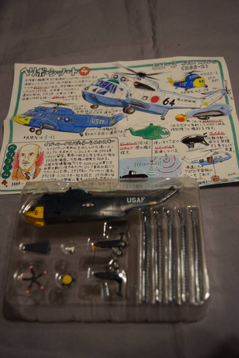 本品は、零戦などの1/144キットで有名なSWEETが一時発売したシーキングのデカールセットで、エフトイズの食玩「ヘリボーンコレクション」の未塗装キット状態の素材が1個付属していました。
