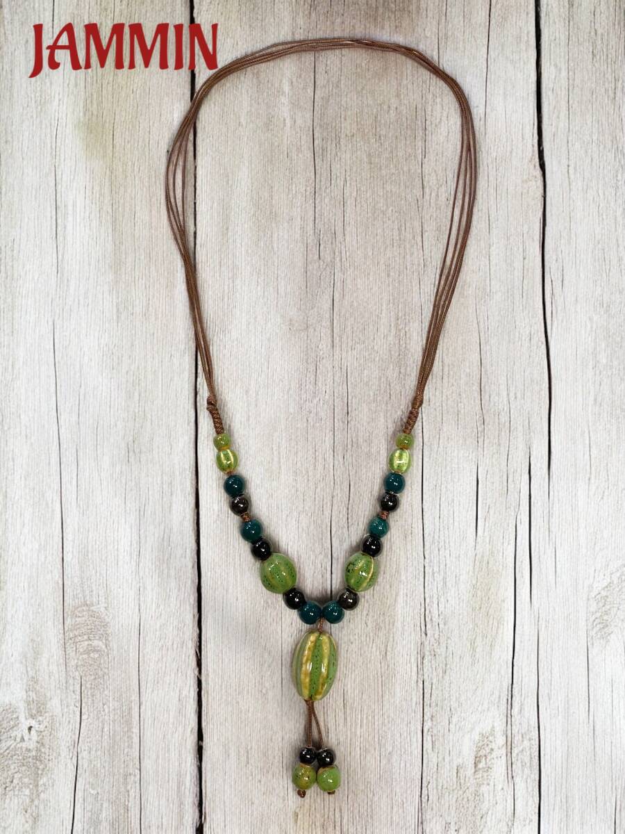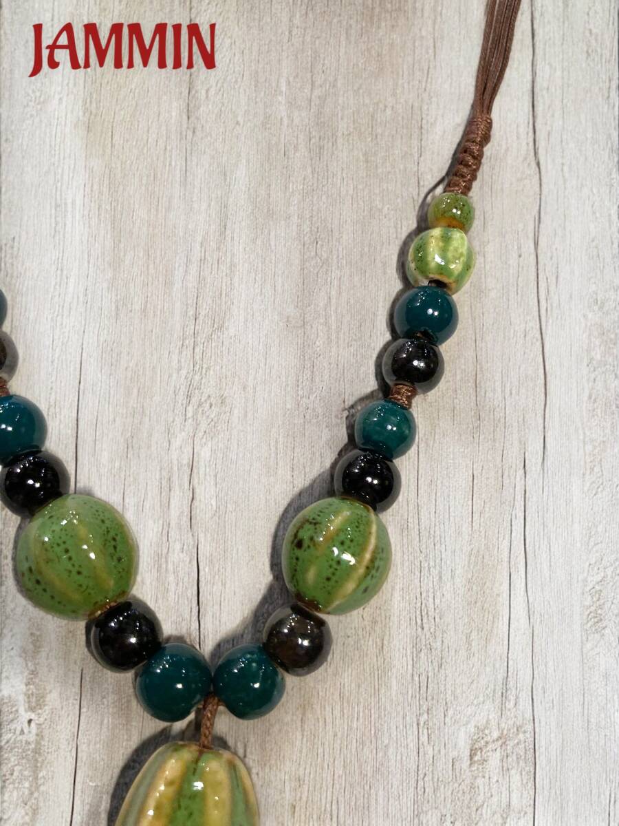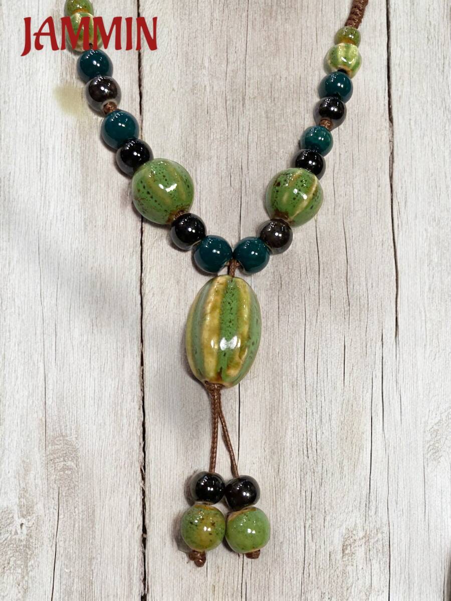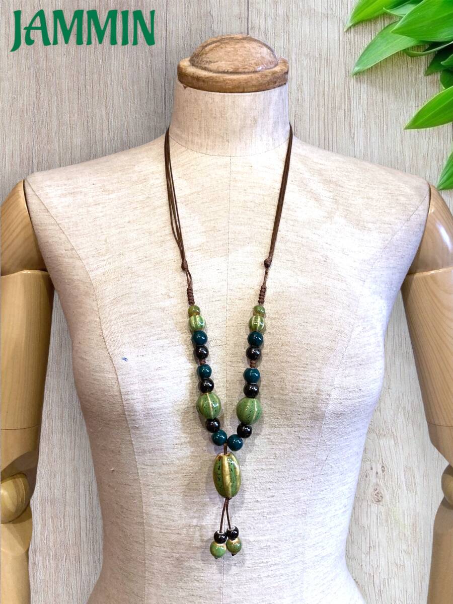 陶器ビーズネックレス アジアン ネックレス ヒッピー エスニック レトロ