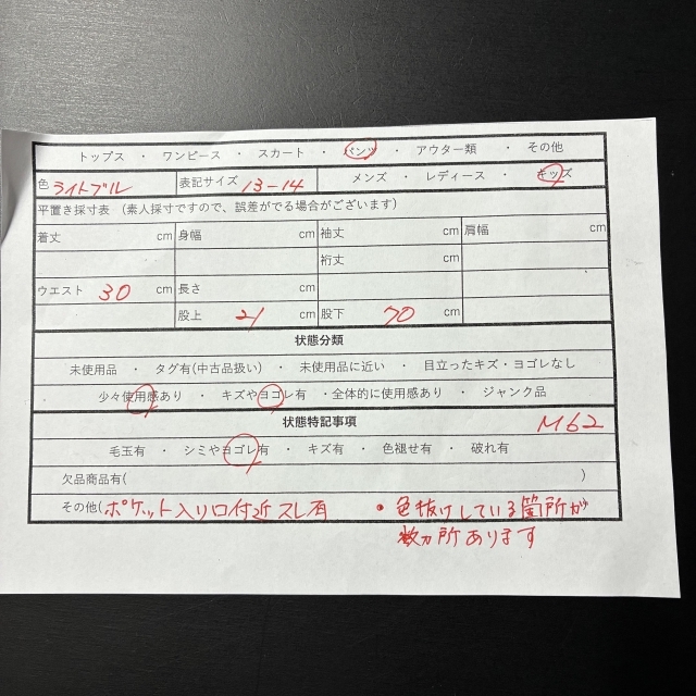 ・慎重に検品を行っておりますが、見落としがある場合がございます。